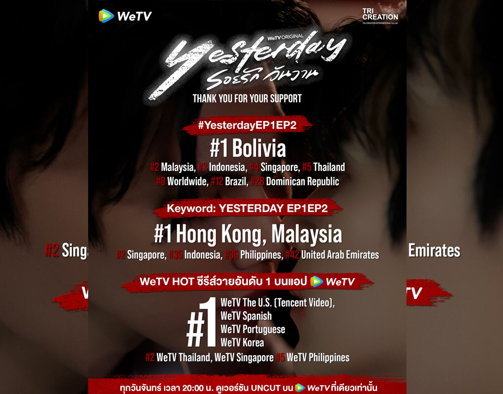 “ฟอร์ด–พีท” เปิดเกมเดือด สะเทือนโซเชียล เมื่อความรักถูกใช้เป็นเครื่องมือ ดราม่าเข้มข้นระดับสิบ ใน WeTV Original “Yesterday รอยรักวันวาน”พุ่งทะยานอันดับ 1 บนแอป WeTV หลายพื้นที่ทั่วโลก