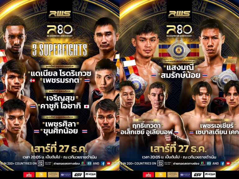 เวทีมวยราชดำเนิน สังเวียนมวยไทยระดับตำนาน บ้านเกิดของมวยไทย จัดงานแถลงข่าวประกาศความพร้อมเตรียมสร้างปรากฏการณ์ครั้งประวัติศาสตร์ฉลองครบรอบ 80 ปี กับรายการมวยไทยศึกใหญ่ที่สุดแห่งปี โดยในทุกวันที่ 23 ธันวาคมของทุกปี ถือเป็นวันสถาปนาเวทีมวยราชดำเนิน และรายการ RWS Rajadamnern World Series ยังคงเดินหน้าสร้างอีเวนต์ใหญ่ประจำปี เพื่อตอกย้ำความยิ่งใหญ่ของวันเกิดสนามอย่างต่อเนื่อง และปีนี้ศึก “R80 Rajadamnern Anniversary” เตรียมระเบิดความมันส์ในวันเสาร์ที่ 27 ธันวาคม 2568 กับการรวมสุดยอดคู่มวยที่ดีที่สุดของปีมาไว้ในค่ำคืนเดียว นำทัพโดย 3 คู่ซูเปอร์ไฟต์หยุดโลก คู่ชิงแชมป์ราชดำเนิน 1 คู่ และคู่ประกอบรายการอีก 4 คู่ นายเธียรชัย พิสิฐวุฒินันท์ ประธานเจ้าหน้าที่บริหาร บริษัท…