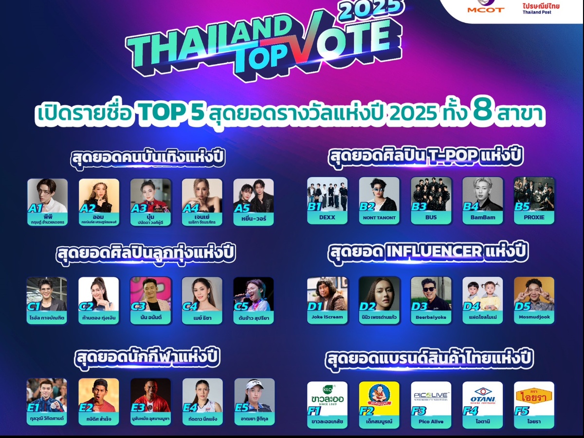 พร้อมเปิดโผ เปิดโหวต 8 สาขารางวัล TOP 5 ของประเทศ “Thailand Top Vote 2025”