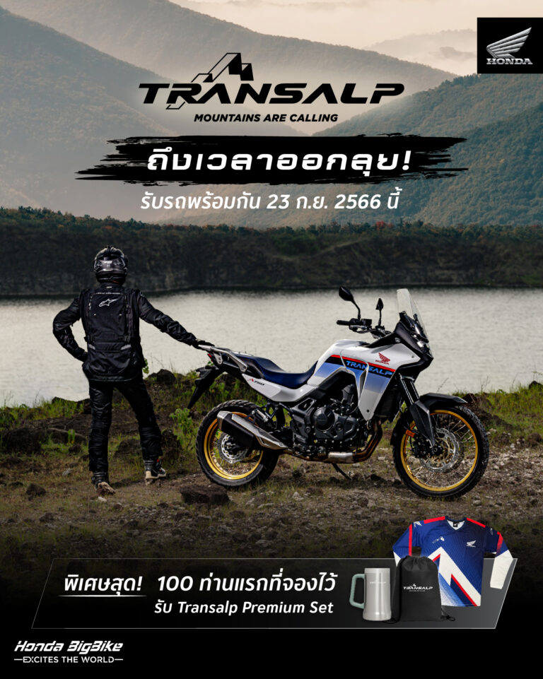 ไทยฮอนด้า พร้อมส่งมอบ ‘New Honda XL750 Transalp’ และวางจำหน่ายอย่างเป็นทางการพร้อมกันวันที่ 23 กันยายน นี้ หลังจากที่ได้เปิดราคาจำหน่าย และเปิดรับจองเมื่อเดือนกรกฎาคม ที่ผ่านมา โดยได้รับกระแสตอบรับจากสายแอดเวนเจอร์ที่ต่างรอคอยจับจองเป็นเจ้าของ ทั้งนี้ พร้อมมอบสิทธิพิเศษสำหรับผู้ที่จอง New Honda XL750 Transalp 100 ท่านแรก รับฟรี ‘Transalp Premium Set’ ที่มีทั้งแก้วพรีเมียม กระเป๋าสายลุย และเสื้อ Transalp Collection มอบให้ท่านละ 1 เซต พร้อมให้ออกไปลุยในทุกเส้นทาง New Honda XL750 Transalp มีทั้งหมด…