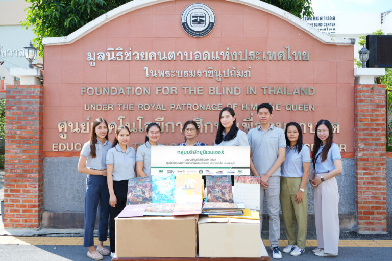อุมาพร วิฒิรณประเสริฐ (ที่ 5 จากซ้าย) ผู้จัดการอาวุโส ฝ่ายธุรการกลาง บริษัท ยูนิเวนเจอร์ จำกัด (มหาชน) ส่งมอบปฎิทินเก่า ให้กับมูลนิธิช่วยคนตาบอดแห่งประเทศไทย ในพระบรมราชินูปถัมภ์ ศูนย์เทคโนโลยีการศึกษาเพื่อคนตาบอด ต่อเนื่องเป็นปีที่ 2 เพื่อนำไปผลิตหนังสืออักษรเบรลล์ สำหรับใช้เป็นสื่อการเรียนการสอนให้กับโรงเรียนสอนคนตาบอดทั่วประเทศ โดยมี ชนิดาภา เพ็ชรรักษ์ (ที่ 4 จากซ้าย) ผู้อำนวยการศูนย์เทคโนโลยีการศึกษาเพื่อคนตาบอด เป็นผู้รับมอบ ณ มูลนิธิช่วยคนตาบอดแห่งประเทศไทยในพระบรมราชินูปถัมภ์ ศูนย์เทคโนโลยีการศึกษาเพื่อคนตาบอด อ.ปากเกร็ด จ.นนทบุรี