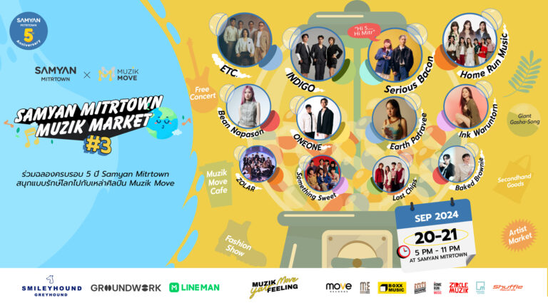 สามย่านมิตรทาวน์ จับมือมิวสิคพาร์ตเนอร์ Muzik Move ผู้นำด้าน Music & Entertainment ฉลองครบ 5 ปีแบบสุดปัง อลังกว่าทุกปี! ในงาน “Samyan Mitrtown Muzik Market” ต่อเนื่องเป็นปีที่ 3 ขยายพื้นที่ความสุข 2 วันเต็มกับฟรีคอนเสิร์ตจากทัพศิลปิน Muzik Move อัดแน่นของรางวัลสุดเอ็กซ์คลูซีฟจากศิลปิน และห้ามพลาด! Hi 5 Hi MITR Hi Celebration เติมเต็มมิตรภาพด้วยภาพความสุขของมิตร ในโมเมนต์สุดพิเศษกับปรากฏการณ์ Balloon Bombs กว่า 3,000 ใบ กลางสามย่านมิตรทาวน์…