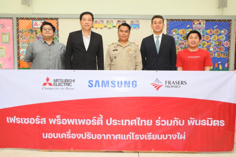 ห้องเรียนปลอดฝุ่น บริษัท เฟรเซอร์ส พร็อพเพอร์ตี้ (ประเทศไทย) จำกัด (มหาชน) นำโดย นายภวรัญชน์ อุดมศิริ (ที่ 2 จากซ้าย) รองประธานเจ้าหน้าที่บริหาร สายพัฒนาโครงการที่อยู่อาศัยแนวราบ กลุ่มอสังหาริมทรัพย์เพื่อการอยู่อาศัย ร่วมกับ นายชิซุโอะ นาคาสึคาสะ (ที่ 4 จากซ้าย)กรรมการและผู้จัดการทั่วไปส่วนการตลาดและการขาย บริษัท มิตซูบิชิอีเล็คทริค กันยงวัฒนา จำกัด และ นายวัชรธร แก่นยะกูล (ซ้าย) ผู้จัดการฝ่ายขายโครงการ บริษัท ไทยซัมซุง อิเลคโทรนิคส์ จำกัด มอบเครื่องปรับอากาศให้แก่โรงเรียนบางไผ่ เพื่อมุ่งสร้างห้องเรียนปลอดฝุ่นสำหรับเด็กอนุบาล พร้อมสร้างสภาวะแวดล้อมที่ช่วยส่งเสริมสุขภาพและสุขภาวะการเรียนของเด็กไทย ซึ่งเป็นหนึ่งในแนวคิดของบริษัทฯ ที่มุ่งมั่นยกระดับคุณภาพชีวิตของคนในชุมชนโดยรอบบริเวณโครงการ เพื่อช่วยแก้ไขปัญหา และเป็นส่วนหนึ่งในการพัฒนาชุมชนให้ดียิ่งขึ้นอย่างยั่งยืน สอดรับเจตนารมณ์ของเฟรเซอร์ส พร็อพเพอร์ตี้ ประเทศไทย ในการสร้างสรรค์พื้นที่ให้ประสบการณ์ที่ดีคงอยู่ (Inspiring experiences, creating places for good.) โดยมี นายศุภกิตติ นาปองสี (ที่ 3 จากซ้าย) ผู้อำนวยการสถานศึกษาโรงเรียนบางไผ่ เป็นผู้รับมอบ เมื่อเร็ว ๆ นี้ ณ โรงเรียนบางไผ่ กรุงเทพฯ
