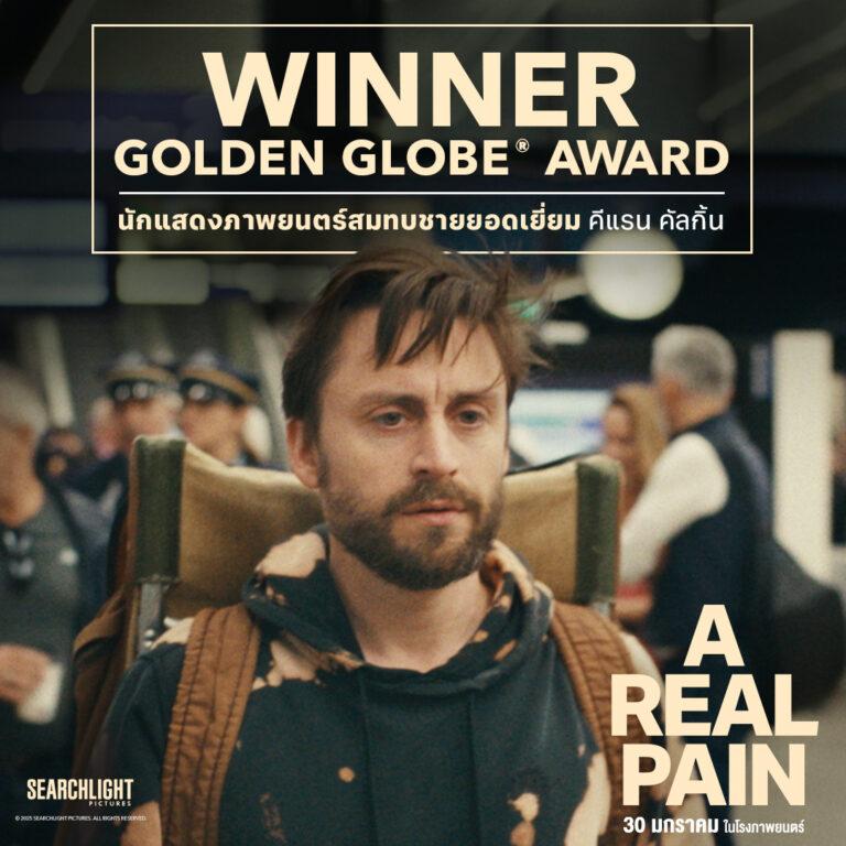สมกับที่เหล่าคนรักหนังผู้ได้ชมภาพยนตร์จาก Searchlight Pictures เรื่อง “A Real Pain” ต่างชื่นชมการแสดงและเทใจให้กับผลงานของของ คีแรน คัลกิ้น (Kieran Culkin) ในเรื่องนี้ เมื่อล่าสุดนักแสดงหนุ่มคว้ารางวัล Golden Globe Awards® สาขานักแสดงภาพยนตร์สมทบชายยอดเยี่ยมจาก The 82nd Annual Golden Globes® มาครองได้สำเร็จ ก่อนที่ “A Real Pain” จะเข้าฉายในประเทศไทย วันพฤหัสบดีที่ 30 มกราคม 2568 ในโรงภาพยนตร์ โดยก่อนหน้านี้ภาพยนตร์ฟีลกู้ด “A Real Pain” จากผลงานการเขียนบทและกำกับโดย เจสซี ไอเซนเบิร์ก (Jesse Eisenberg) ได้รับคำชมจากเหล่านักวิจารณ์ในอเมริกามาอย่างท่วมท้น โดยเฉพาะฝีมือการแสดงของ คีแรน คัลกิ้น ที่คนรักหนังต่างบอกว่า “คัลกิ้นยอดเยี่ยมมาก แสดงได้อย่าง น่าประทับใจและน่าทึ่งจริง ๆ” รวมถึง “คัลกิ้นและไอเซนเบิร์กสวมบทบาทของพวกเขาได้อย่างยอดเยี่ยม สื่อถึงอัตลักษณ์ในตัวมนุษย์แต่ละคนได้ดีมาก” และยังบอกว่า “เขาต้องเข้าชิงรางวัลใหญ่ในปีนี้แน่ ๆ” ทั้งนี้นอกจากรางวัลนักแสดงสมทบชายยอดเยี่ยมของ คีแรน คัลกิ้น “A Real Pain” ยังเข้าชิง Golden Globe Awards® อีก 3 รางวัล ในสาขาภาพยนตร์ยอดเยี่ยม ประเภทเพลงหรือคอมเมดี้, นักแสดงนำชายยอดเยี่ยม “เจสซี ไอเซนเบิร์ก” และบทภาพยนตร์ยอดเยี่ยม ภาพยนตร์เรื่อง “A Real Pain” ของ Searchlight Pictures บอกเล่าเรื่องราวการเดินทางสุดอลเวงของ เดวิด (Devid) และเบนจิ (Benji) ลูกพี่ลูกน้องคนละขั้วที่แตกต่างและไม่เข้ากันเลย แต่ต้องเดินทางไปทัวร์โปแลนด์เพื่อให้เกียรติและรำลึกถึงคุณยายผู้เป็นที่รักของพวกเขาด้วยกัน การผจญภัยครั้งนี้จึงเต็มไปด้วยความท้าทายและบททดสอบ เมื่อความตึงเครียดระหว่างทั้งคู่กลับมาอีกครั้ง ท่ามกลางภูมิหลังประวัติครอบครัวของพวกเขา พบกับการเดินทางที่เต็มไปด้วยดราม่าและรอยยิ้มที่จะทำให้อบอุ่นใจ พร้อมกับพิสูจน์ฝีมือการแสดงของ คีแรน คัลกิ้น และ เจสซี ไอเซนเบิร์ก ใน “A Real Pain” ภาพยนตร์ระดับรางวัลที่ควรค่าแก่การรับชมในโรงภาพยนตร์ 30 มกราคมนี้ ร่วมประทับใจไปพร้อมกันในโรงภาพยนตร์ทั่วประเทศ โซเชียลมีเดีย: X: @20thCenturyTH Instagram: @20thCenturyStudiosTH Facebook: @20thCenturyStudiosTH Youtube: @20thCenturyStudiosTH
