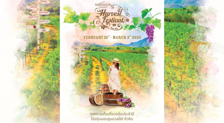 ไร่องุ่นมอนซูน แวลลีย์ (Monsoon Valley Vineyard) ไร่องุ่นที่ใหญ่ที่สุดในประเทศไทยและเป็นไวน์ที่ได้รับรางวัลระดับนานาชาติมากที่สุดของไทย ขอเชิญชวนผู้รักไวน์และนักผจญภัยเข้าร่วมงานเทศกาลเก็บเกี่ยวองุ่นประจำปี “Monsoon Valley Harvest Festival 2025” ซึ่งจะจัดขึ้นระหว่างวันที่ 22 กุมภาพันธ์ – 2 มีนาคม 2568 ณ ไร่องุ่นอันสวยงามของมอนซูน แวลลีย์ ในหัวหิน มอนซูน แวลลีย์ มีพื้นที่ 300 ไร่ ผลิตไวน์มากกว่า 300,000 ขวดต่อปี โดยปลูกองุ่นกว่า 10 สายพันธุ์ และการันตีด้วยรางวัลระดับสากลกว่า 430 รางวัล ไวน์ของมอนซูน แวลลีย์ จึงได้รับความนิยมทั่วโลก ตอกย้ำสถานะเป็นโรงบ่มไวน์ที่เป็นที่รู้จักและมีชื่อเสียงที่สุดของประเทศไทย 2025 – วินเทจที่รังสรรค์โดยธรรมชาติ ในปีนี้ ผลผลิตไวน์ที่มอนซูน แวลลีย์ เป็นหนึ่งในความท้าทายที่สุดเท่าที่เคยมีมา ด้วยอิทธิพลจากสภาพอากาศที่แปรปรวน ฤดูกาลเริ่มต้นด้วยความแห้งแล้งรุนแรงก่อนที่จะเปลี่ยนเป็นภาวะที่ปริมาณน้ำฝนสูงกว่าค่าเฉลี่ย ส่งผลให้ต้องมีการตัดแต่งกิ่งล่าช้าที่สุดเป็นประวัติการณ์ของไร่องุ่น แม้ว่าผลผลิตจะลดลงเล็กน้อย แต่อากาศเย็นที่ยาวนานขึ้นกลับช่วยเพิ่มคุณภาพขององุ่นได้อย่างมาก อากาศเย็นในเวลากลางคืนช่วยให้ผลองุ่นเติบโตได้อย่างดี มีแทนนินที่นุ่มนวล ความเป็นกรดที่สมดุล และระดับน้ำตาลที่เพิ่มขึ้นอย่างค่อยเป็นค่อยไป มั่นใจได้ว่าวินเทจของปีนี้จะเป็นหนึ่งในวินเทจที่มีเอกลักษณ์โดดเด่น…