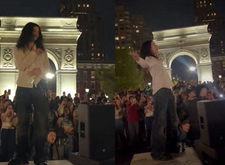 ที่ไทยอาจเรียกห้างแตก แต่ที่อเมริกาอาจต้องเรียกว่าสวนแตกกันเลยทีเดียว สำหรับเซอร์ไพรส์ที่ไม่เล็กของสาว Lorde นักร้อง-นักแต่งเพลงสาวสุดอัจฉริยะ เจ้าของเพลงฮิตติดลมบนไปทั่วโลกอย่าง “Royals”, “Green Light” และ “Solar Power” ที่โผล่เซอร์ไพรส์แฟน ๆ ที่ Washington Square Park ด้วยการเปิดเพลง ร้อง และเต้นไปกับ “What Was That” เพลงใหม่ล่าสุดที่ยังไม่ปล่อยออกมาอย่างเป็นทางการให้แฟน ๆ ฟังเป็นครั้งแรก จนแฟน ๆ แห่มาหาเธอกันมากกว่า 8,000 คน เรียกได้ว่าความนิยมของเธอยังคงล้นหลาม และแฟน ๆ ต่างตื่นเต้นและรอคอยผลงานใหม่ในรอบ 4 ปีของเธอกันอย่างเต็มที่ คลิปจากแฟนคลับ