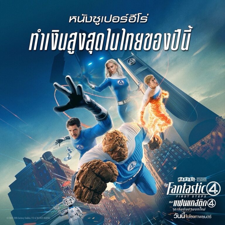 ทะยานสู่ความเป็นที่สุดได้อย่างไร้ข้อกังขา สำหรับภาพยนตร์แอ็กชันซูเปอร์พาวเวอร์ฟอร์มยักษ์ “Marvel Studios’ The Fantastic Four: First Steps เดอะ แฟนแทสติก 4: จุดเริ่มต้นปฐมบทใหม่” ที่ล่าสุดก้าวขึ้นเป็นหนังซูเปอร์ฮีโร่ทำเงินอันดับ 1 ของ Box Office เมืองไทยในปี 2025 ไปตามคาดหมาย สมกับเป็น Marvel’s First Family ที่จับมือกันฟันฝ่าทุกความท้าทายมาได้จริง ๆ ซึ่งคงไม่มีใครปฏิเสธว่า หนึ่งในสิ่งสำคัญที่ทำให้ภาพยนตร์เรื่องนี้สมบูรณ์แบบคืองาน Visual Effects ที่เนรมิตให้งานภาพสวยตระการตาและน่าจดจำ เบื้องหลังของความตื่นตาตื่นใจคือทีมวิชวลเอฟเฟกต์ที่นำโดย Scott Stokdyk เจ้าของรางวัลออสการ์ด้านวิชวลเอฟเฟกต์ ซึ่งใช้เทคนิคการผสานกันอย่างไร้รอยต่อระหว่างฉากจริงกับฉากดิจิทัล โดยอ้างอิงจากข้อมูลรายละเอียดที่เก็บมาจากองค์ประกอบจริง ไม่ว่าจะเป็นอาคาร ถนน อุปกรณ์ประกอบฉาก และการจัดแสง ตั้งแต่บรรยากาศสุดล้ำของนิวยอร์กยุค 1960 ไปจนถึงยาน World Ship และ Excelsior ทีมวิชวลเอฟเฟกต์ก็เติมเต็มภาพเหล่านั้นได้อย่างไร้ที่ติ สอดคล้องกับบรรยากาศ และทำให้ผู้ชมทางหน้าจอรู้สึกได้ถึงความสมจริง นอกจากนี้ทีมวิชวลเอฟเฟกต์ยังมีส่วนในการช่วยให้ตัวละคร Ben Grimm เปลี่ยนเป็น The Thing ได้อย่างสมบูรณ์ด้วยการสร้างรูปลักษณ์ที่ซับซ้อน โดยทีมงานเบื้องหลังได้ทำการบันทึกการแสดงของ Ebon Moss-Bachrach ผ่านเทคโนโลยีโมชันแคปเจอร์ ใช้กล้องติดตามทุกการเคลื่อนไหวของนักแสดง เพื่อให้ทีมวิชวลเอฟเฟกต์มีแผนที่ดิจิทัลในการสะท͊อนท่าทางและรายละเอียดเล็ก ๆ น้อย ๆ จากการแสดงของ Moss-Bachrach ลงบนโมเดลของ The…