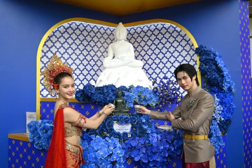 โดยในพิธีเปิด ICONSIAM THAICONIC SONGKRAN CELEBRATION 2025 นางสงกรานต์ “โบว์ เมลดา” ปรากฏกายในชุดไทยร่วมสมัยห่มผ้าสไบสีทองปักประดับดิ้นทอง เลื่อม ลูกปัด คริสตัลสีแดง นุ่งผ้าไหมยกทอง ผ้ายกเมืองนคร จีบหน้านางชายสะบัดแบบโบราณ ทรงคุณค่าและหายาก สวมเครื่องประดับที่รังสรรค์จากทองคำแท้ ทับทิมและเพชรโบราณ มูลค่ากว่า 120 ล้านบาท เสริมบุคลิกที่สวย หวาน ซ่อนความซุกซนให้มีเสน่ห์ยิ่งขึ้น ขณะที่ “วิน-เมธวิน” คีพลุคทันสมัยสากล ในชุดสูทผ้าไหมทอแขนยาว โจงกระเบนสีแดง สวมเครื่องประดับที่ทำจากจิวเวลรี่แท้ ทองโบราณและพลอยทับทิมล้อมเพชร โดยชุดแต่งกายและเครื่องประดับสำหรับ 8 คนดังที่สลับหมุนเวียนมาร่วมขบวนแห่ในแต่ละวัน มูลค่าสูงถึง 440 ล้านบาท