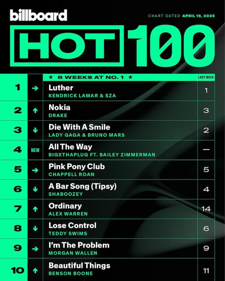 นอกจาก “luther” จะสร้างสถิติเพลงอันดับ 1 ติดต่อกันถึง 8 สัปดาห์บนชาร์ต Billboard Hot 100 แล้ว อัลบั้ม GNX ของ Kendrick Lamar ยังเป็น 1 ใน 5 อัลบั้มจากศิลปินแรปที่สามารถครองอันดับในตำแหน่ง Top 5 ของชาร์ต Billboard Top 200 ได้ยาวนานถึง 20 สัปดาห์ ซึ่งเป็นระยะเวลาที่ยาวนานที่สุดในประวัติศาสตร์ของ Billboard