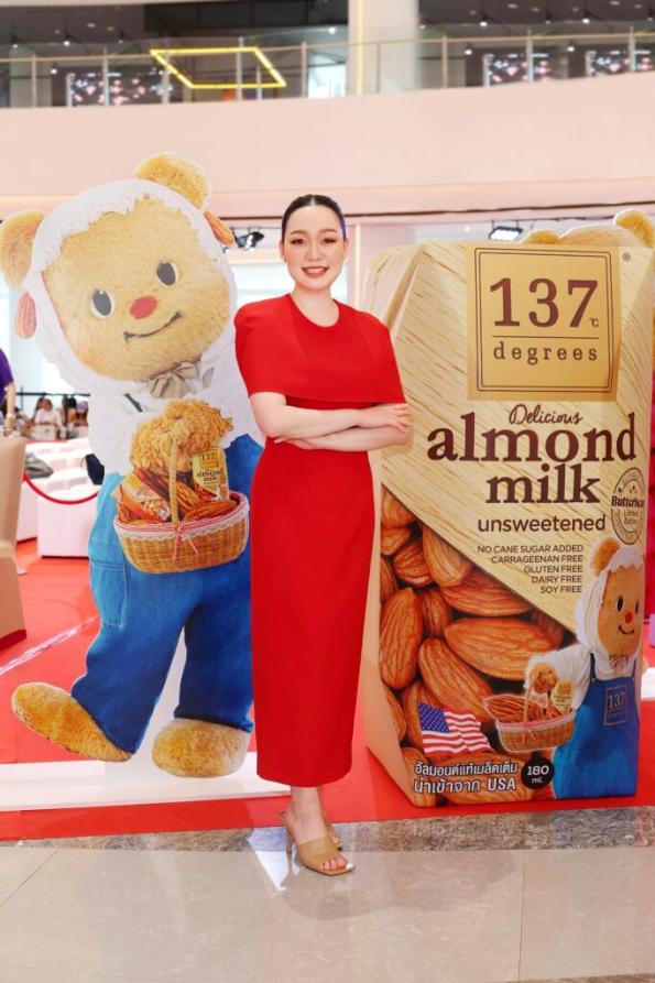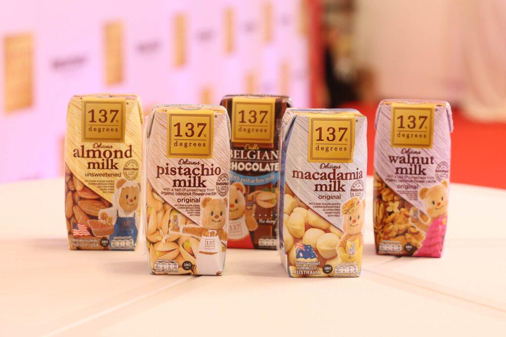 ทั้งนี้ นอกจากบรรจุภัณฑ์ใหม่ที่มีน้องเนยแล้ว 137 ดีกรี® ยังได้นำเสนอ ประสบการณ์ใหม่ให้กับลูกค้าให้ได้เข้ามาสัมผัสกับรสชาตินมอัลมอนด์ ซึ่งเราเป็นแบรนด์หนึ่งเดียวที่คั้นสดจากถั่วเต็มเมล็ด ไม่ใช้หัวเชื้อ หรือ Nut Paste ไม่เติมน้ำตาลทราย โดยใช้ความหวานจากเกสรดอกมะพร้าว ปราศจากไขมันทรานส์ และคอเลสเตอรอล ไม่มีสารกันเสีย คุณค่าสารอาหารเปี่ยมล้น มีวิตามินและแร่ธาตุที่จำเป็นต่อร่างกาย เสริมสร้างภูมิคุ้มกัน ช่วยในการทำงานของสมองและบำรุงสายตา รวมทั้งเนื้อนมที่เข้มข้น สามารถนำไปตีโฟมขึ้นได้ซึ่งเหมาะสำหรับการนำไปต่อยอดเมนูเครื่องดื่มได้หลากหลาย “นมของ 137 ดีกรี® ได้รับการการันตีด้านโภชนาการ โดยสัญลักษณ์ทางเลือกเพื่อสุขภาพ ผู้บริโภคจึงมั่นใจได้ว่า หากคุณเลือกที่จะดื่มนม 137 ดีกรี® คุณจะได้รับความเฮลตี้ 100% แน่นอน” นางสาวอริสา กล่าว