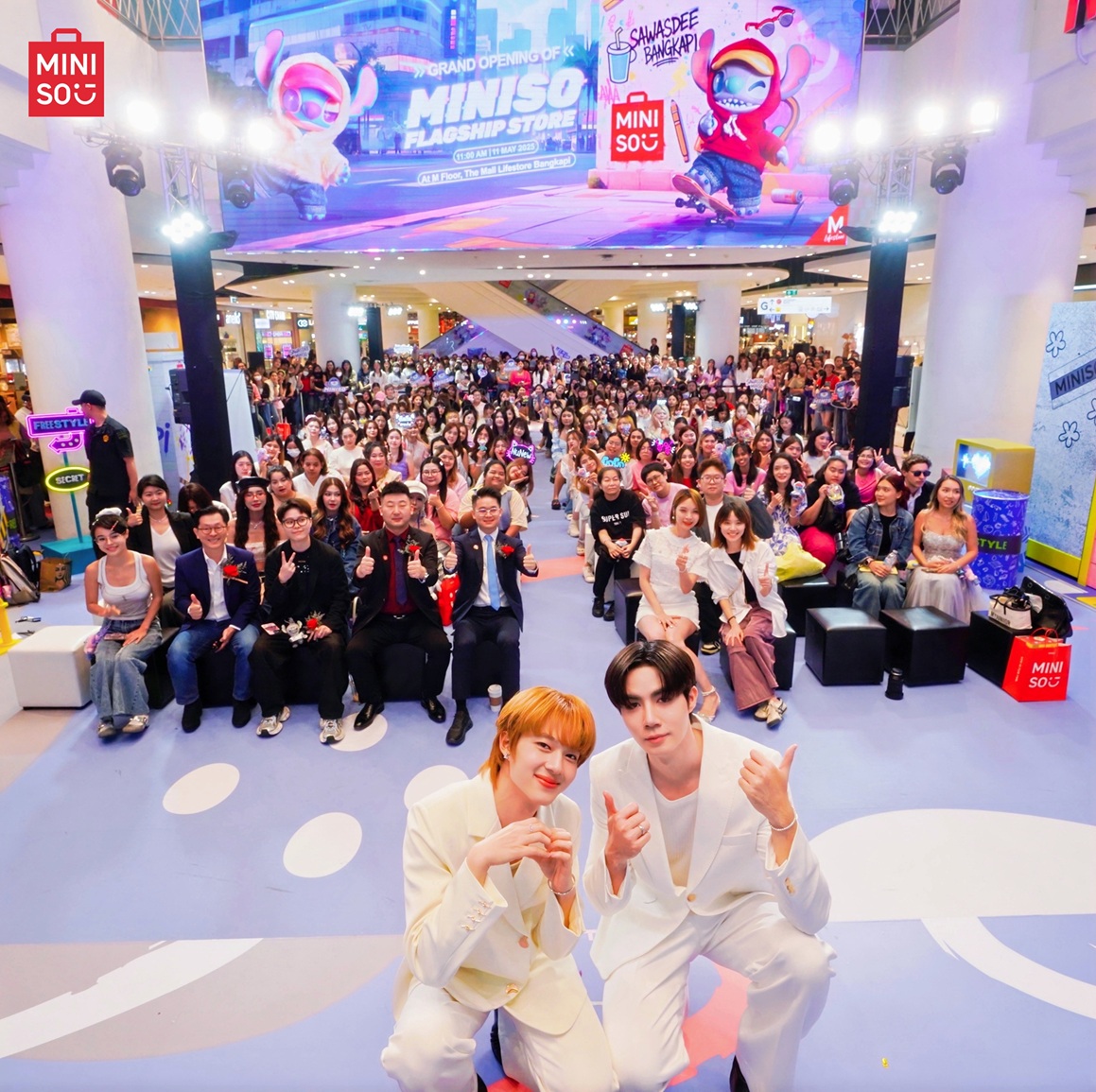 MINISO แบรนด์ไลฟ์สไตล์ระดับโลก เปิดตัวแฟลกชิปสโตร์แห่งใหม่ล่าสุดในประเทศไทย ณ ศูนย์การค้า The Mall LifeStore บางกะปิ (ชั้น M) ใจกลางย่านธุรกิจฝั่งตะวันออกของกรุงเทพฯ เมื่อเร็วๆ นี้ บนพื้นที่กว่า 1,000 ตารางเมตร โดดเด่นด้วยดีไซน์สไตล์สตรีทสุดล้ำสมัย นำเสนอสินค้ามากกว่า 5,500 รายการ จากการร่วมมือกับแบรนด์สินค้าลิขสิทธิ์ (IP) ชื่อดังระดับโลกกว่า 50 รายการ ครอบคลุมทั้งตุ๊กตาไวนิลพลัช กล่องสุ่ม เครื่องประดับ ตุ๊กตาผ้า และน้ำหอม โดยสินค้าที่พัฒนาร่วมกับ IP (IP co-branded merchandise) คิดเป็นสัดส่วนถึง 70% ของสินค้าทั้งหมดภายในร้าน และยังได้เชิญคู่นักแสดงสุดฮอต ซี พฤกษ์ พานิช และ นุนิว ชวรินทร์ เพริศพิริยะวงศ์ ร่วมงานเพื่อเป็นการเฉลิมฉลองการเปิดร้านอย่างยิ่งใหญ่ โดยวันเปิดร้านยังได้รับความสนใจจากลูกค้านับพัน เพื่อจับจองคอลเลกชัน Stitch GenZ Street ในวันเปิดขายวันแรก ตอกย้ำกระแสตอบรับสินค้าลิขสิทธิ์ (IP) ของแบรนด์ในตลาดไทย