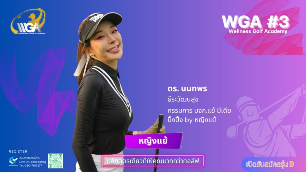 Wellness Golf Academy คอร์สเรียนกอล์ฟเพื่อผู้บริหาร และบุคคลทั่วไป ที่ไม่ใช่แค่การสอนตีกอล์ฟแบบธรรมดา เพราะ Wellness Golf Academy ได้ออกแบบหลักสูตรกอล์ฟให้เหมาะสมกับแต่ละบุคคล เพื่อให้การเล่นกีฬาตีกอล์ฟได้ทั้งความสนุก ได้ทั้งการดูแลสุขภาพ และได้สร้างคอมมูนิตี้ใหม่ ๆ แม้คนที่ไม่มีพื้นฐานมาก่อนก็สามารถเล่นกีฬากอล์ฟได้ เช่น 3 สาว อย่าง หญิงแย้ นนทพร ธีระวัฒนสุข อินฟลูเอนเซอร์ชื่อดัง, เฟร้นช์ฟราย รินทร์ณฐา อัจฉริยวัฒนกุล พิธีกรชื่อดัง ดีกรีนางงามเวที Miss Thailand World 2015 และสายเอี๊ยม กีรติกา จารุรัตน์จามร เจ้าของตำแหน่ง Miss International Thailand 2018 ก็เลือกเริ่มต้นเรียนตีกอล์ฟกับ Wellness Golf Academy