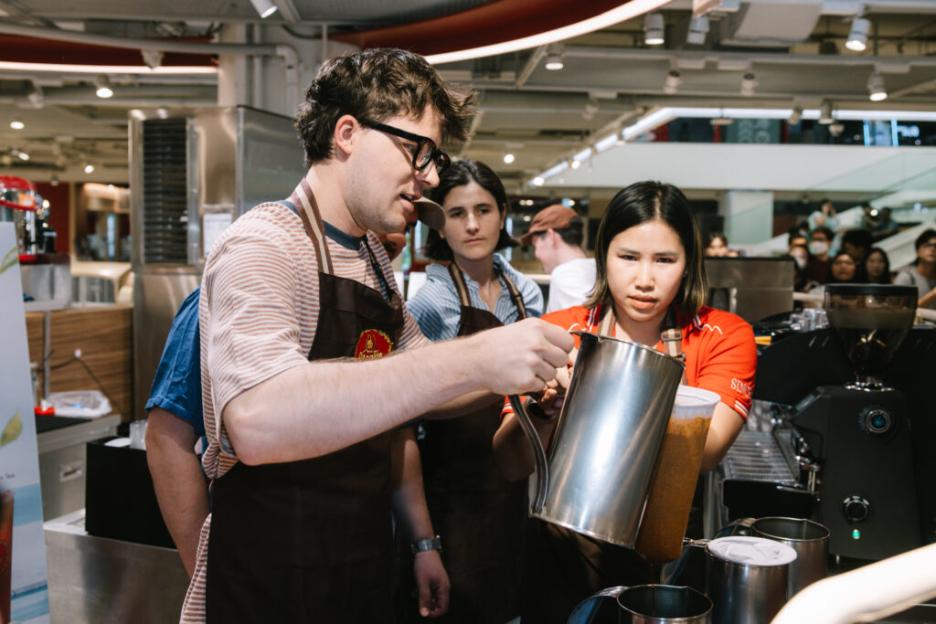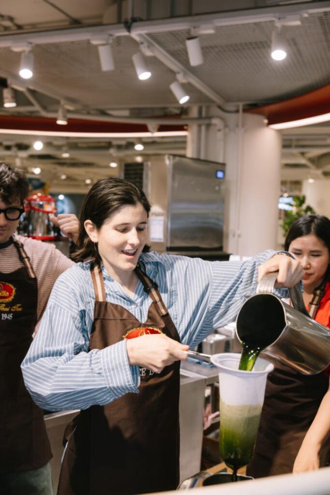 ต้อนรับ Valley วงอินดี้ป็อปมาแรงจากแคนาดาขวัญใจ Gen Z นำโดย 3 สมาชิกอย่าง Rob Laska (ร้องนำ), Karah James (มือกลอง) และ Alex DiMauro (มือเบส) ที่ตกหลุมรักเมืองไทยอย่างจัง ทาง Universal Music Thailand จึงจัดเวิร์คช็อปสุดพิเศษ ด้วยการชวน Valley บุกร้านชาตรามือ สาขา Siam Discovery เรียนรู้วิธีการทำเครื่องดื่มสุดโปรดของคนไทยอย่าง ชาไทย และ ชาเขียวนม ด้วยตัวเองเป็นครั้งแรกเมื่อวันอาทิตย์ที่ 8 มิ.ย. ที่ผ่านมา โดยมีทีมเชี่ยวชาญจากร้านชาตรามือเป็นคนสอนวิธีทำอย่างละเอียด นอกจากจะได้เห็นทั้ง 3 คนในลุคบาริสต้าน่ารัก ๆ แล้ว ที่โชคดีสุด ๆ ก็คงหนีไม่พ้นแฟนคลับชาวไทยที่ไปเจอพวกเขาอย่างใกล้ชิด และ Valley ก็เสิร์ฟแฟนเซอร์วิส แจกลายเซ็นให้รัว ๆ บอกได้เลยว่าไม่มีงานไหน Exclusive ไปกว่างานนี้แล้ว แฟน ๆ กลับบ้านพร้อมรอยยิ้มและความทรงจำดี ๆ กันถ้วนหน้า