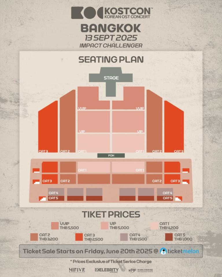สำหรับงาน “KOSTCON KOREAN OST CONCERT” จะเปิดจำหน่ายบัตรในวันศุกร์ที่ 20 มิถุนายน 2568 ผ่านทาง Ticketmelon บัตรราคาเริ่มต้น 1,000 บาท ติดตามรายละเอียดเพิ่มเติมได้ที่