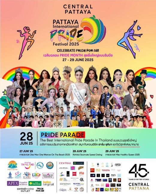 ภาคตะวันออก งาน Pattaya Pride วันที่ 27-29 มิถุนายน 2568 ณ เซ็นทรัลพัทยา จังหวัดชลบุรี