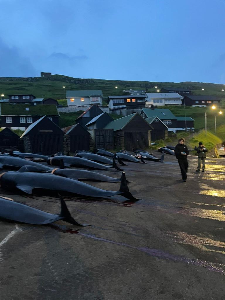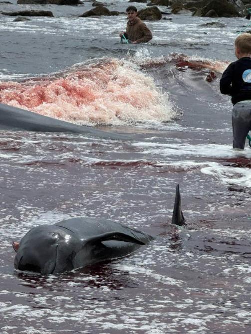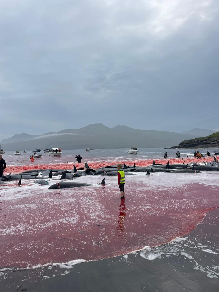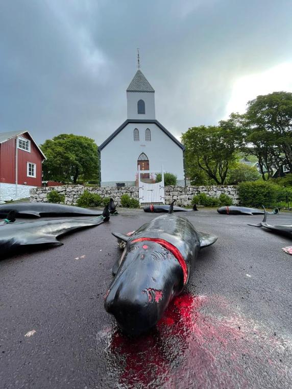 เมื่อสัปดาห์ที่ผ่านมา วาฬนำร่องจำนวน 246 ตัว ถูกต้อนเข้าอ่าวเลย์นาร์ ณ หมู่เกาะแฟโร และถูกรุมฆ่าอย่างทารุณด้วยมีดปลายแหลมที่เรียกว่า “แลนซ์ไนฟ์” จากรายงานของผู้อยู่ในเหตุการณ์ พบว่าเหยื่อที่เป็นแม่วาฬที่กำลังตั้งท้องกว่า 30 ตัว และลูกวาฬเล็กๆ อีกจำนวนมากที่ยังไม่สามารถระบุจำนวนได้แน่ชัด องค์กรพิทักษ์สัตว์แห่งโลก ประเทศเดนมาร์ก (World Animal Protection Denmark) ได้ออกแถลงการณ์เรียกร้องให้นายกรัฐมนตรีของหมู่เกาะแฟโร ยุติการล่าอันโหดร้ายนี้โดยทันที