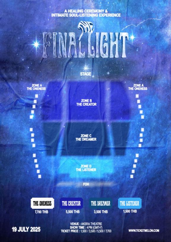 จิ๊กซอว์ชิ้นสุดท้าย กำลังจะถูกวางลง เพื่อให้ ‘แสงสุดท้าย’ ส่องนำทาง…กลับสู่ตัวเราเอง เตรียมพบกับ ‘The Final Light’ งานที่เปลี่ยน “การฟัง” ให้กลายเป็น “การกลับบ้าน” และเปลี่ยน “การแสดง” ให้กลายเป็น พิธีกรรมแห่งแสงเงียบ งานที่ไม่ได้ให้คุณโฟกัสที่เธอ… แต่ชวนให้คุณฟังเสียงในใจตัวเอง