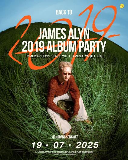 พิเศษ! ชวนแฟน ๆ มาร่วมงานเปิดอัลบั้มในธีม “Back to 2019 – Immersive Experience with James Alyn” มาร่วมดื่มด่ำความทรงจำในบรรยากาศสุดพิเศษ ไปกับ DJ Set จาก James Alyn และเซอร์ไพรส์มากมายที่แฟนเพลงจะได้สัมผัสแบบใกล้ชิด ในวันเสาร์ที่ 19 กรกฎาคม 2568 เริ่มเวลา 14:00 น. ณ ตรอกโกดังทรงวาด บัตรยืนราคา 600 บาท พร้อมรับ CD อัลบั้ม “2019” หน้างาน (1 แผ่น/บัตร) จำกัด 4 สิทธิ์ต่อท่าน
