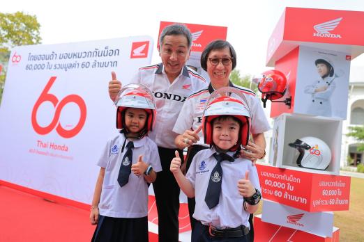 ไทยฮอนด้า ผู้ผลิตและจัดจำหน่ายรถจักรยานยนต์ฮอนด้า และเครื่องยนต์อเนกประสงค์ฮอนด้าในประเทศไทย ร่วมมือกับภาครัฐนำโดยกระทรวงมหาดไทย และหน่วยงานภาคีเครือข่ายภาครัฐ จัดงานแถลงข่าวเปิดตัวโครงการรณรงค์เพื่อความปลอดภัยทางถนนระดับประเทศ เนื่องในโอกาสฉลองครบรอบ 60 ปี ภายใต้แนวคิด “60 ปี ไทยฮอนด้า ขับขี่ปลอดภัย เพื่อสังคมไทยที่ยั่งยืน” โดยมอบหมวกกันน็อกมาตรฐานผลิตภัณฑ์อุตสาหกรรม (มอก.) จำนวน 60,000 ใบ รวมมูลค่า 60 ล้านบาท ให้กับสถานศึกษาและหน่วยงานภาครัฐทั่วประเทศ ผ่านพิธีแถลงข่าวที่จัดขึ้นอย่างเป็นทางการ ณ ห้องราชสีห์ กระทรวงมหาดไทย