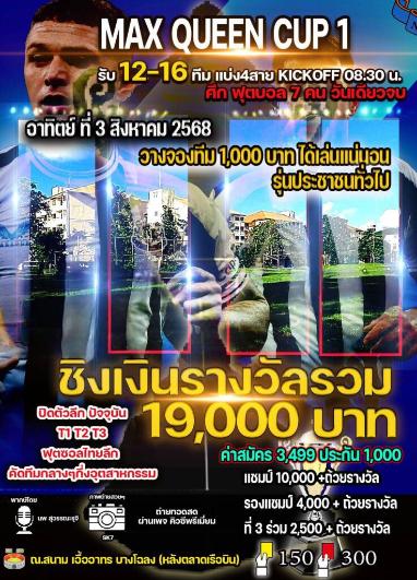 การแข่งขัน “Max Queen Cup” ครั้งที่ 1 จัดขึ้นแบบวันเดียวจบ มีทีมเข้าร่วม 16 ทีม จากหลากหลายสาย มีทั้งทีมหน้าเก่า หน้าใหม่ ขาประจำบอลเดินสาย รวมถึงทีมจากรายการดังอย่าง “GoGoal Tournament” และ “TidTam League” ที่แฟนๆ น่าจะคุ้นชื่อกันดี