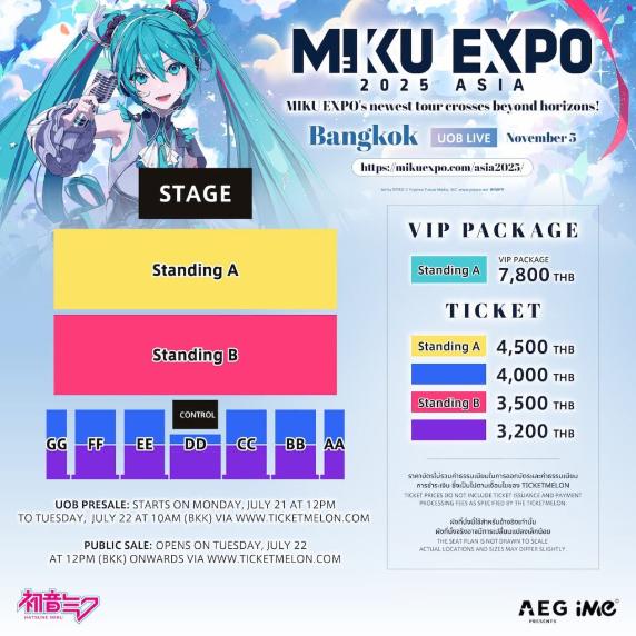 ปรากฏการณ์นักร้องเสมือนจริงครั้งแรกในกรุงเทพฯ! เตรียมตัวให้พร้อม ประเทศไทย! นักร้องเสมือนจริงชื่อดังระดับโลก Hatsune Miku กำลังจะมาเยือนกรุงเทพฯ แล้ว กับคอนเสิร์ตสุดล้ำ HATSUNE MIKU EXPO 2025 ที่หลายคนตั้งตารอ เตรียมพบกับประสบการณ์ไลฟ์โชว์สุดล้ำแห่งอนาคตที่ไม่เหมือนใครที่พร้อมเสิร์ฟให้กับแฟนๆ ชาวไทย ในวันพุธที่ 5 พฤศจิกายนนี้ ที่ UOB LIVE รับรองได้เลยว่าทุกวินาทีจะเต็มไปด้วยพลัง ดนตรีสุดเร้าใจ แสงสีสุดอลังการ และพลังแห่งโลกดิจิทัลอย่างแท้จริง