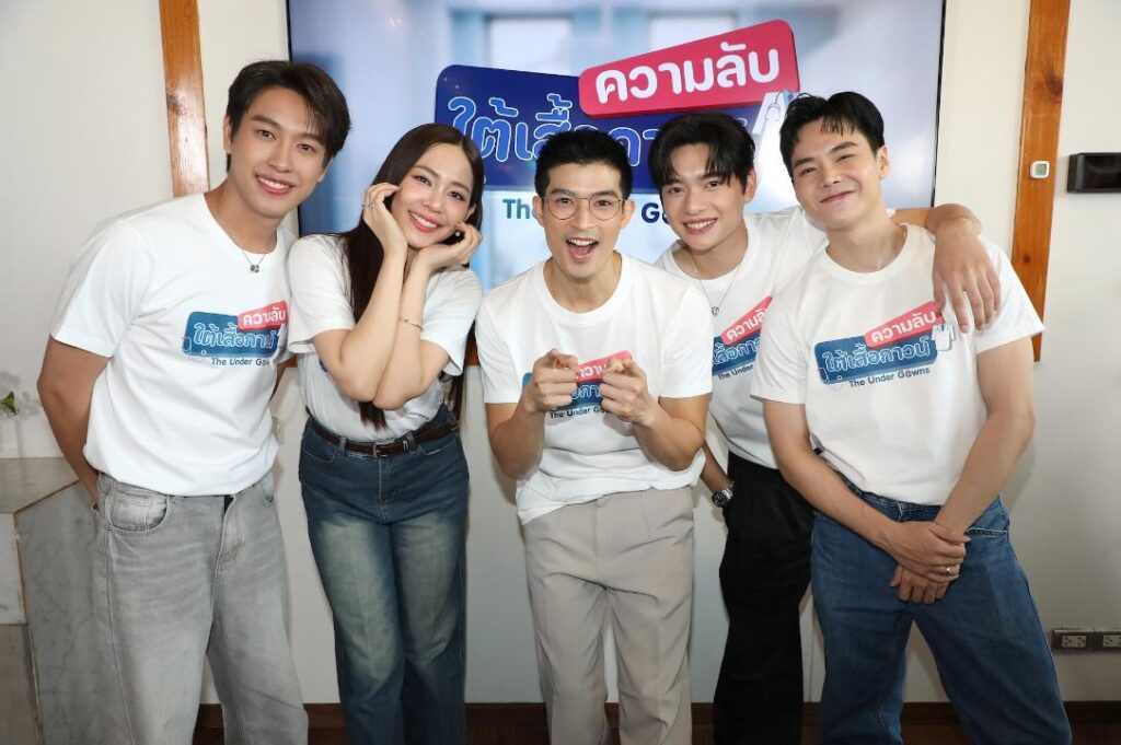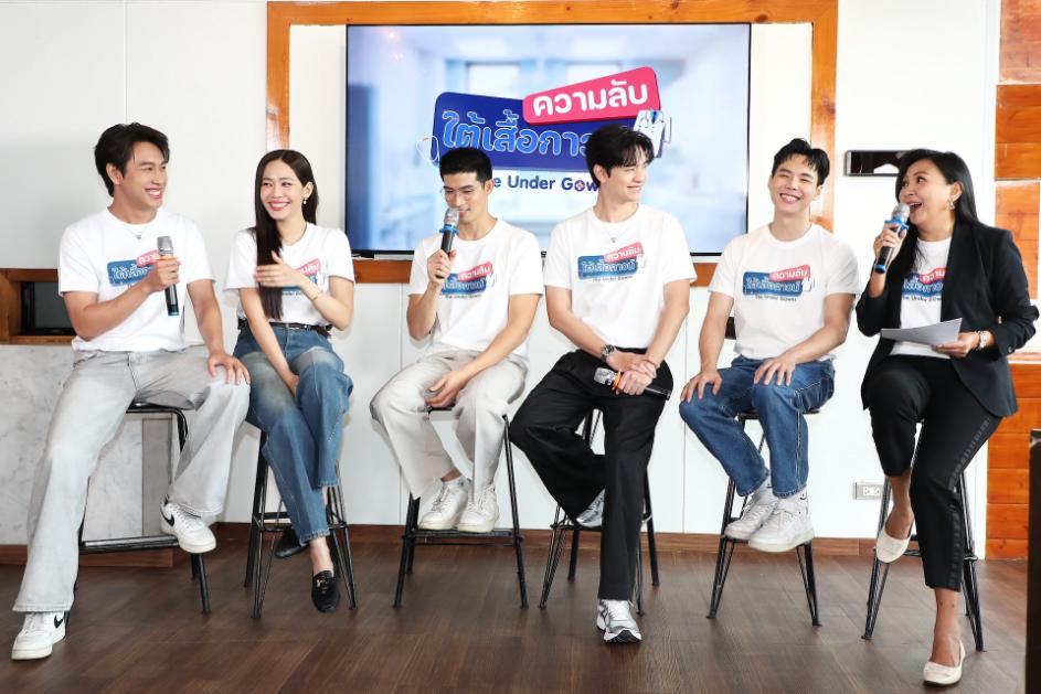 โดย “อุ๊ ช่อผกา วิริยานนท์” โปรดิวเซอร์ใหญ่นำทีมนักแสดงพูดคุยถึงที่มาที่ไปของซีรีส์น้ำดีที่ให้ทั้งสาระ ความรู้ และความบันเทิงที่มีอยู่ใน “ความลับใต้เสื้อกาวน์” มีสื่อมวลชนมาร่วมงานกันอย่างอบอุ่น พร้อมเหล่านักแสดงนำมาร่วมงานครบครัน ทั้ง ตูมตาม-ยุทธนา เปื้องกลาง, นางเอกคนสวย บิ๊นท์-สิรีธร ลีห์อร่ามวัฒน์ , ปลื้ม-ธยศทรณ์ ไวยฉัยยา, ก้าวหน้า-กิตติภัทร แก้วเจริญ, กานต์-ธนกฤต อัศวเรขา , และ นพ.ภาสกร วันชัยจิรบุญ โปรดิวเซอร์