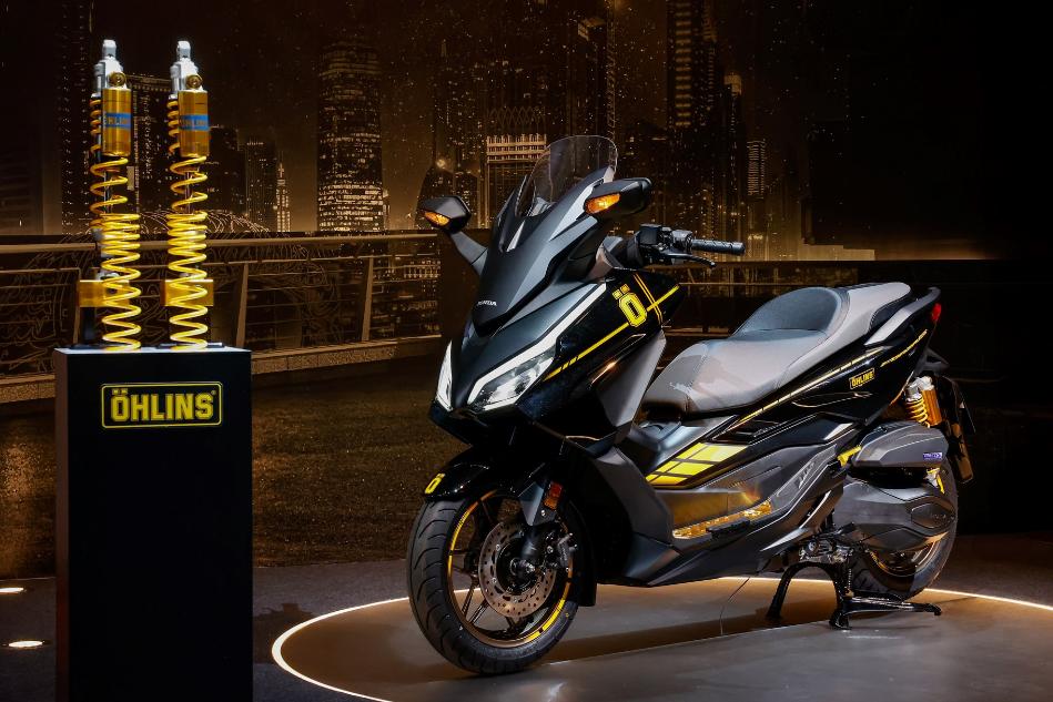 New Honda Forza 350 Special Editionx Öhlins เสริมลุคสปอร์ตด้วยชุดสติกเกอร์ Öhlins รอบคัน สะท้อนความพรีเมียมด้วย โลโก้ Bold Emblem สีทอง มาพร้อมชุดแผ่นวางเท้าและพักเท้าหลังจาก H2C จำนวนจำกัดเพียง 500 คันทั่วประเทศ ราคาแนะนำ 207,000 บาท