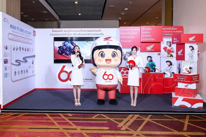 เนื่องในโอกาสพิเศษครบรอบ 60 ปี นี้ ไทยฮอนด้าได้จัดตั้ง “โครงการบริจาคหมวกกันน็อก”จำนวน 60,000 ใบ มูลค่า 60 ล้านบาท จัดขึ้นภายใต้แนวคิด “60 ปี ไทยฮอนด้า ขับขี่ปลอดภัย เพื่อสังคมไทยที่ยั่งยืน” โดยร่วมมือกับหน่วยงานภาครัฐ สถาบันการศึกษา เราจะส่งมอบหมวกกันน็อก 77 จังหวัดทั่วประเทศ พร้อมเดินหน้าเคียงข้างสังคมไทย ด้วยความมุ่งมั่นในการรณรงค์เรื่องความปลอดภัย และสร้างความตระหนักรู้ให้กับคนไทยทุกคน เพื่อร่วมกันขับเคลื่อนสังคมไทยให้ปลอดภัย และก้าวสู่เป้าหมายของการเป็นสังคมที่อุบัติเหตุเป็นศูนย์