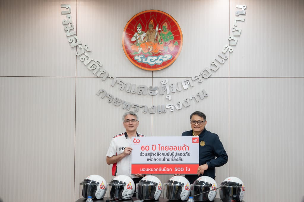 ไทยฮอนด้า ผู้ผลิตและจัดจำหน่ายรถจักรยานยนต์ฮอนด้า และเครื่องยนต์อเนกประสงค์ฮอนด้าในประเทศไทย เดินหน้าสานต่อโครงการรณรงค์ความปลอดภัยทางถนนระดับประเทศ “60 ปี ไทยฮอนด้า ขับขี่ปลอดภัย เพื่อสังคมไทยที่ยั่งยืน” ด้วยการมอบหมวกกันน็อกมาตรฐานผลิตภัณฑ์อุตสาหกรรม (มอก.) จำนวน 500 ใบ ให้กรมสวัสดิการและคุ้มครองแรงงาน (กสร.) กระทรวงแรงงาน เพื่อส่งเสริมการสวมหมวกกันน็อกในกลุ่มแรงงานไทยซึ่งเป็นกำลังสำคัญทางเศรษฐกิจของประเทศ และเป็นกลุ่มที่มีการใช้รถจักรยานยนต์เป็นพาหนะหลักในการเดินทางไปทำงาน การมอบหมวกกันน็อกครั้งนี้จึงเป็นการช่วยลดความเสี่ยง เพิ่มความปลอดภัย และสร้างวัฒนธรรมการขับขี่ที่ปลอดภัยอย่างยั่งยืน