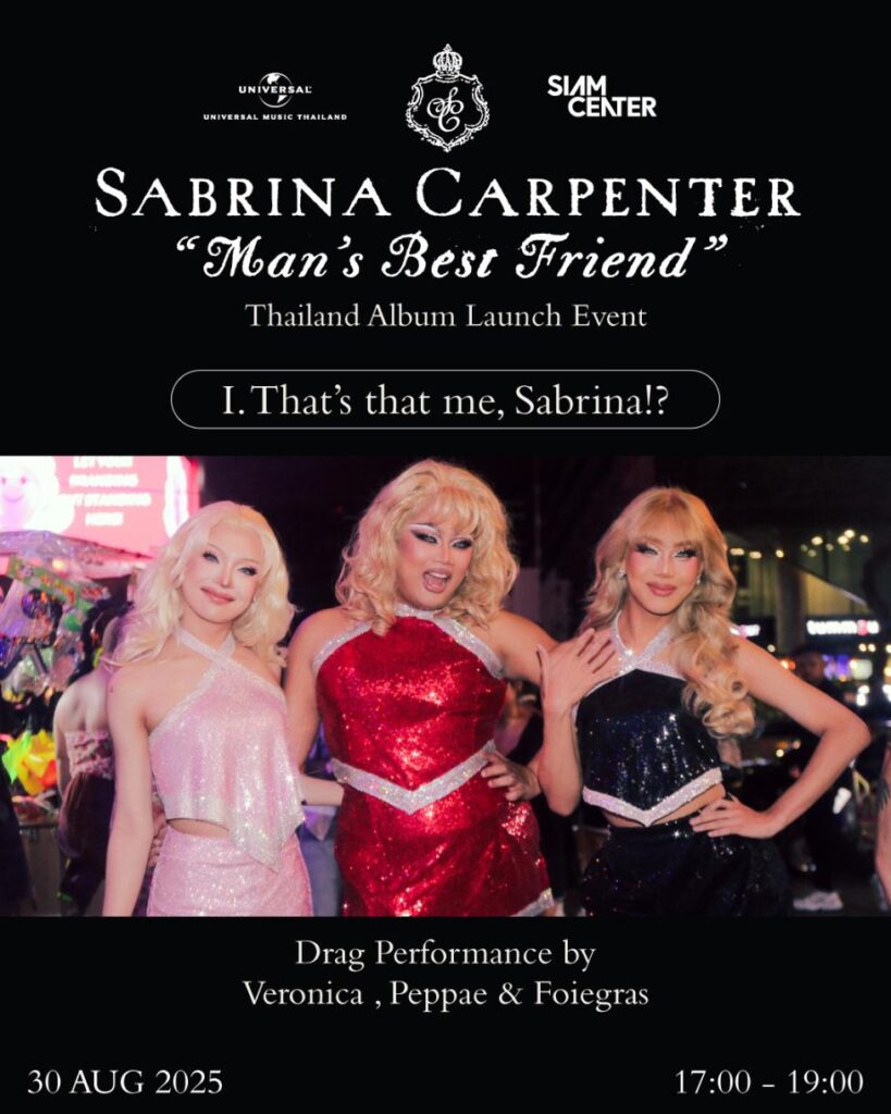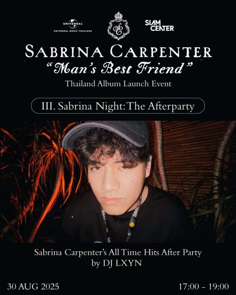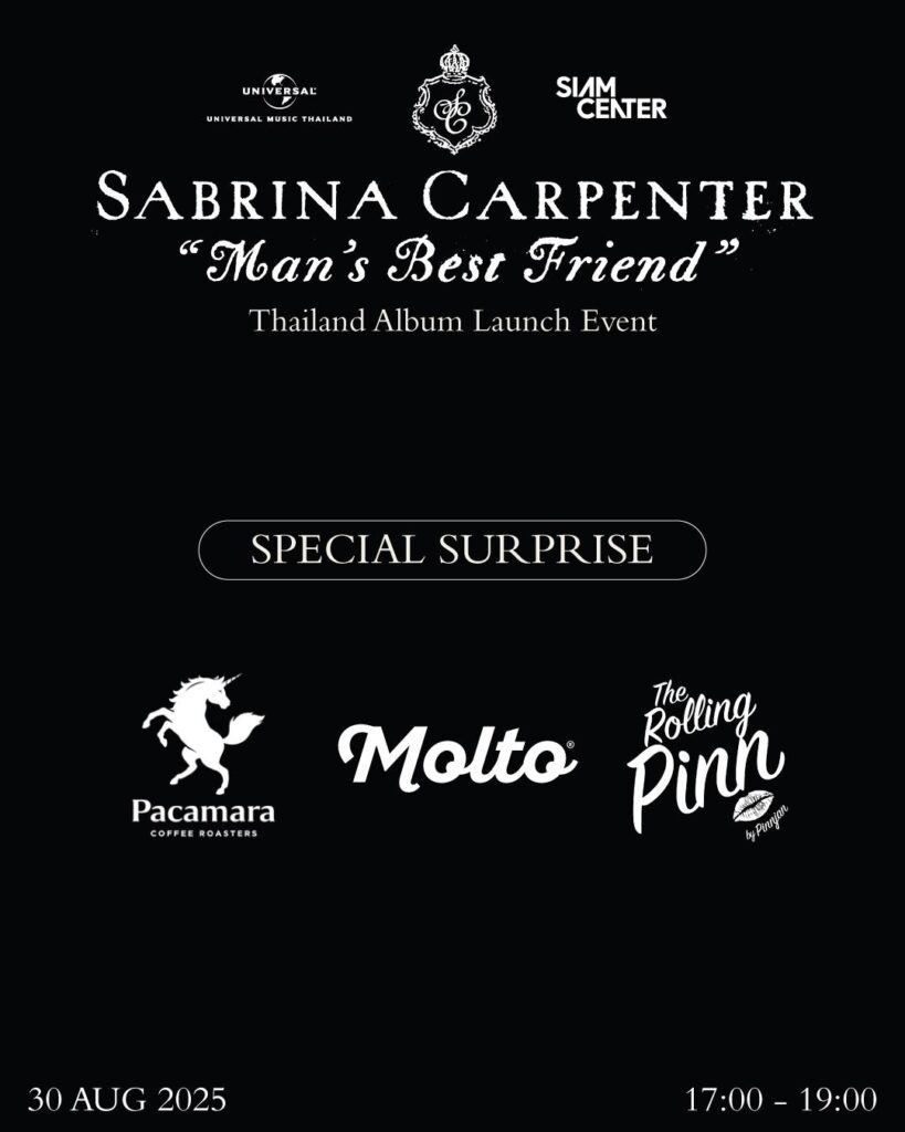 Sabrina Carpenter โกลบอลซูเปอร์สตาร์ เจ้าของสองรางวัลแกรมมี ได้ฤกษ์ปล่อยอัลบั้มใหม่ที่แฟน ๆ รอคอยอย่าง Man’s Best Friend ทั้งที เราก็ต้องฉลองให้สมฐานะ Universal Music Thailand จึงจัดอีเวนต์สุดยิ่งใหญ่ Sabrina Carpenter – Man’s Best Friend Thailand Album Launch Event ฉลองอัลบั้มใหม่ Man’s Best Friend ของ Sabrina Carpenter ที่แรกในประเทศไทย ใจกลางสยามเซ็นเตอร์ ให้แฟน ๆ ได้ฟินกันอย่างเต็มที่ ในวันที่ 30 สิงหาคมนี้