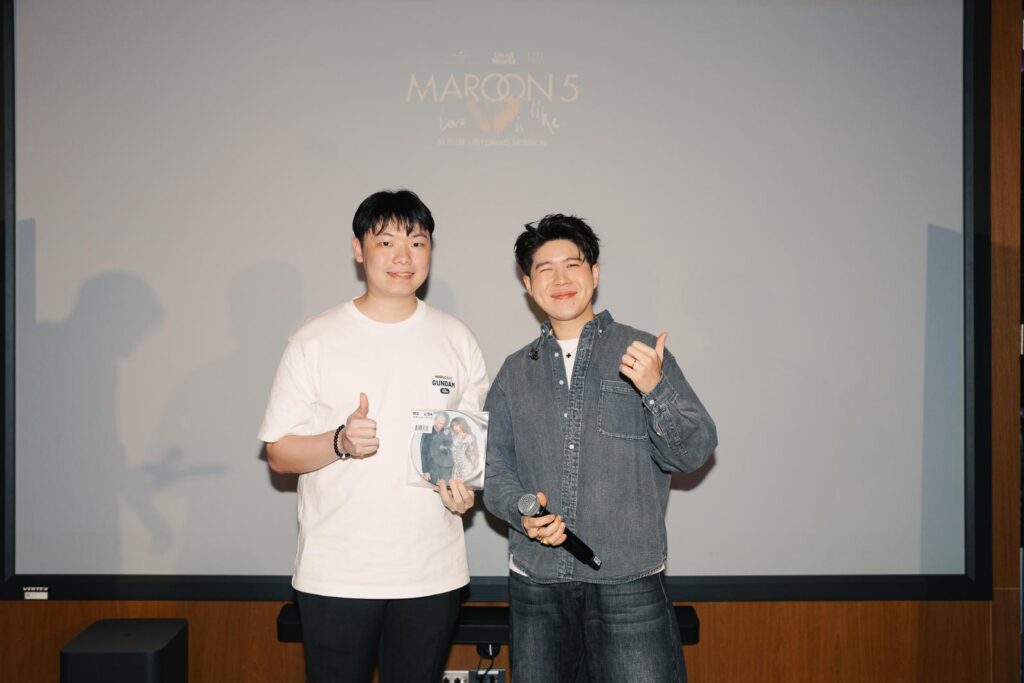 บรรยากาศอบอวลไปด้วยความอบอุ่นและรอยยิ้ม ตั้งแต่นาทีแรกจนถึงนาทีสุดท้ายจริง ๆ สำหรับงาน Maroon 5 : Love Is Like Album Listening Session จัดโดย Universal Music Thailand ร่วมกับ Eazy FM 102.5 เมื่อคืนวันที่ 27 สิงหาคม 2568 ที่ Such A Small World คาเฟ่สุดชิคย่านเจริญกรุง