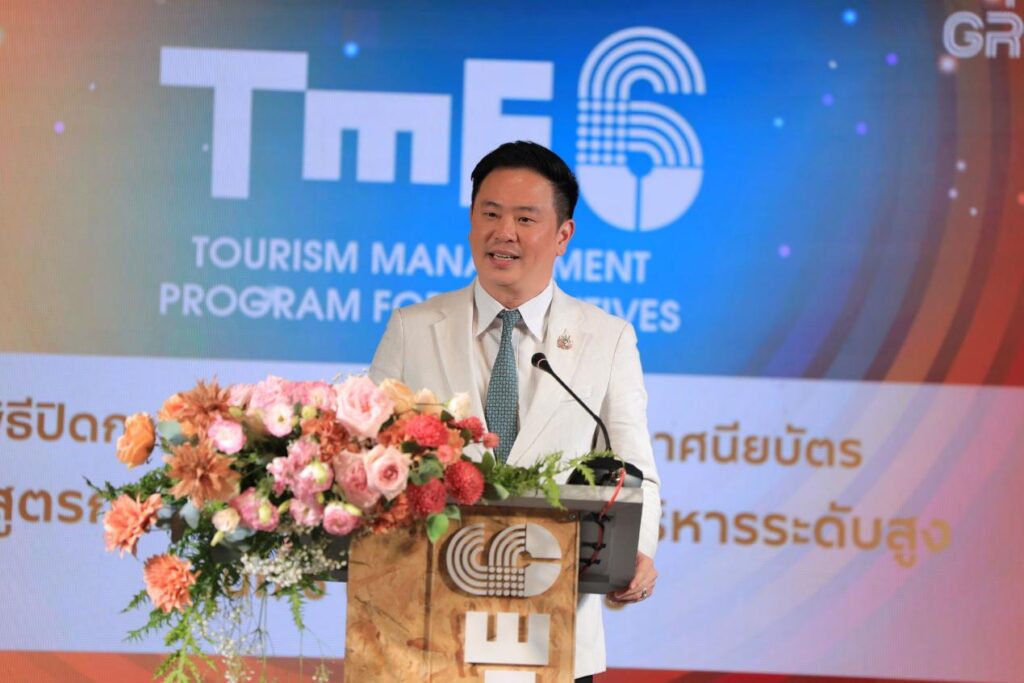 นายจักรพล ตั้งสุทธิธรรม ผู้ช่วยรัฐมนตรีประจำกระทรวงการท่องเที่ยวและกีฬา กล่าวว่า การพัฒนาศักยภาพบุคลากรและยกระดับอุตสาหกรรมท่องเที่ยวไทยยังคงเป็นหัวใจสำคัญของนโยบายรัฐบาลปี 2568 ซึ่งมุ่งผลักดันประเทศไทยสู่การเป็น Tourism Hub ผ่านแนวทางที่เน้นทั้งคุณภาพและความยั่งยืน พร้อมขับเคลื่อนเศรษฐกิจด้วยการสร้างงาน กระจายรายได้ และลดความเหลื่อมล้ำทางเศรษฐกิจ สังคม และสิ่งแวดล้อม โดยเฉพาะอย่างยิ่ง ในปี Amazing Thailand Grand Tourism & Sports Year 2025 ที่ทางกระทรวงการท่องเที่ยวและกีฬา ภายใต้การดำเนินงานของ ททท. ร่วมกับพันธมิตรทั้งภาครัฐและเอกชนมุ่งกระตุ้นการเดินทางท่องเที่ยวของนักท่องเที่ยวชาวไทยและชาวต่างชาติ ผ่านโครงการกระตุ้นตลาดและการจัดกิจกรรมอีเวนต์ต่าง ๆ อย่างต่อเนื่อง การเตรียมความพร้อมให้กับฝั่งผู้ประกอบการและผู้บริหารในอุตสาหกรรมท่องเที่ยวจึงเป็นสิ่งสำคัญ เพื่อให้ภาคธุรกิจท่องเที่ยวไทยเพิ่มศักยภาพในการรองรับนักท่องเที่ยวกลุ่มใหม่ ๆ โดยหลักสูตร Tourism Management Program for Executives (TME) ที่ ททท. จัดอบรมในช่วงที่ผ่านมา เพื่อช่วยเสริมองค์ความรู้ใหม่ ๆ เกี่ยวกับการท่องเที่ยวเชิงคุณภาพ การใช้ดิจิทัลและ AI ในการบริหารจัดการ และการออกแบบโมเดลท่องเที่ยวที่เป็นมิตรต่อสิ่งแวดล้อม จะช่วยยกระดับผู้ประกอบการให้สามารถส่งมอบประสบการณ์การท่องเที่ยวไทยที่มีคุณค่าและน่าประทับใจแก่นักท่องเที่ยว และทำให้อุตสาหกรรมท่องเที่ยวไทยสามารถแข่งขันในตลาดโลกได้อย่างมีคุณภาพและยั่งยืน