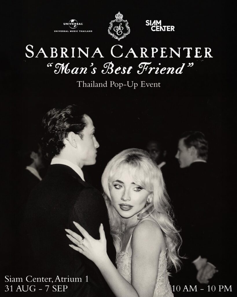ใครที่พลาดโอกาสในการร่วมอีเวนต์ในครั้งนี้ไม่ต้องเสียใจไป เพราะ Sabrina Carpenter – Man’s Best Friend Thailand Pop-Up Event ป็อปอัปอีเวนต์สุดพิเศษนี้จะยังจัดอย่างต่อเนื่อง ที่ สยามเซ็นเตอร์ โซน Atrium 1 ตั้งแต่วันนี้ – 7 กันยายน แฟน ๆ สามารถรับโปสเตอร์ Man’s Best Friend สุดสวย (จำนวนจำกัด) ถ่ายรูปกับแบ็กดร็อปสุดอลังการ โต๊ะ เก้าอี้ และการตกแต่งสวย ๆ ในธีมอัลบั้ม Man’s Best Friend โฟโต้บูธที่มาพร้อมเฟรมสุด Exclusive เฉพาะงานนี้เท่านั้น รวมถึงยังคงได้เอร็ดอร่อยกับเมนูสุดพิเศษจาก 3 แบรนด์ดังของเราเช่นเคย นอกจากนี้ยังมีกิจกรรม “Your Favorite Man’s Best Friend” ฟังอัลบั้ม Man’s Best Friend แล้ว มาเลือกแทร็กโปรดของคุณกันได้ที่งานนี้อีกด้วย จัดเต็มให้ขนาดนี้แล้ว บอกเลยว่าถ้าเป็นแฟนของ Sabrina Carpenter ตัวจริง ห้ามพลาดเด็ดขาด