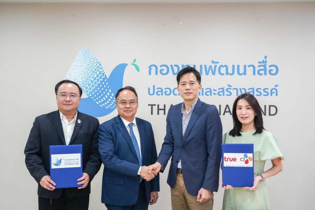กองทุนพัฒนาสื่อปลอดภัยและสร้างสรรค์ จับมือกับ บริษัท ทรู ซีเจ ครีเอชั่นส์ จำกัด ได้ร่วมลงนามในบันทึกข้อตกลงความร่วมมือ (MOU) ว่าด้วย การขับเคลื่อนพัฒนาวิชาชีพ ส่งเสริมจริยธรรม และนวัตกรรมสื่อ เพื่อสร้างระบบนิเวศสื่อปลอดภัยและสร้างสรรค์ พร้อมสนับสนุนการนำนวัตกรรมมาใช้ในการผลิตสื่อคุณภาพ ให้ก้าวทันต่อการเปลี่ยนแปลงของโลกกับสื่อในยุคปัจจุบัน ณ สำนักงานกองทุนพัฒนาสื่อ ปลอดภัยและสร้างสรรค์ ในพิธีลงนามบันทึก ข้อตกลงความร่วมมือระหว่าง กองทุนพัฒนาสื่อปลอดภัยและสร้างสรรค์ โดย ดร.ธนกร ศรีสุขใส ผู้จัดการกองทุนพัฒนาสื่อปลอดภัยและสร้างสรรค์ และบริษัท ทรู ซีเจ ครีเอชั่นส์ จำกัด โดย คุณไมเคิล จองและคุณอารี อารีจิตเสถียร กรรมการบริษัทและประธานเจ้าหน้าที่บริหาร (ร่วม) พร้อมด้วย ดร.ชำนาญ งามมณีอุดม รองผู้จัดการกองทุนพัฒนาสื่อปลอดภัยและสร้างสรรค์ ได้ให้เกียรติร่วมเป็นสักขีพยาน ในพิธีลงนามดังกล่าวอีกด้วย