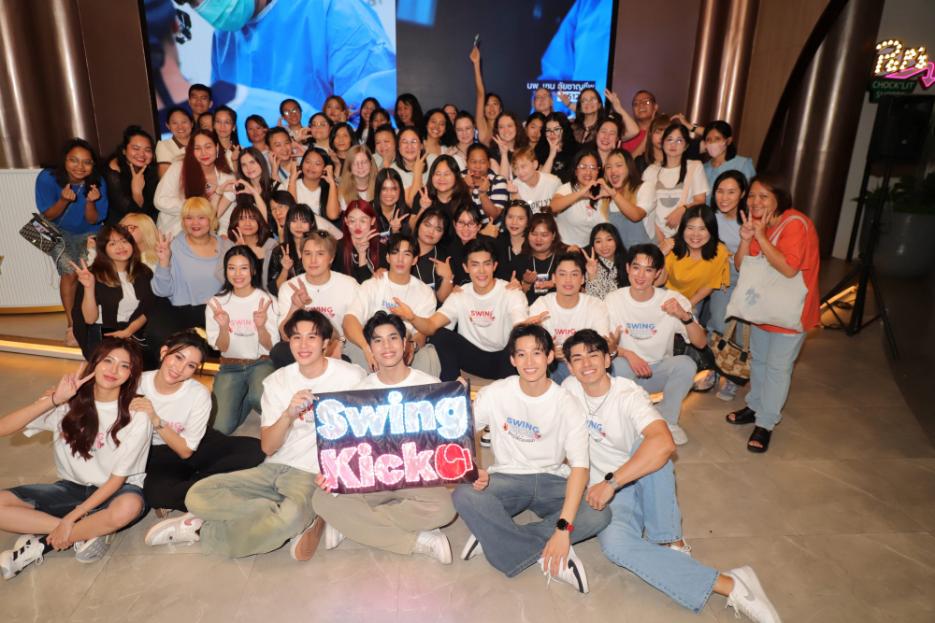 บริษัท เลิฟมีเดีย จำกัด ผู้ผลิตซีรีส์คุณภาพภายใต้การควบคุมงานผลิตโดย คุณวิสูตร วัลลา พร้อมเดินหน้าลุยโปรเจ็กต์ใหม่ในซีรีส์เรื่อง “SWING KICK ยกนี้พี่ต้องชนะ” แนวเลิฟ-แอ็กชั่น ส่งเสริมกีฬามวยไทยผลักดันซอฟต์พาวเวอร์ไทยให้ออกสู่ตลาดโลก โดยได้จัดงานเปิดตัว Pilot ตัวอย่างซีรีส์ โชว์หมัดเด็ดฮุกหมัดหนักมัดใจให้แฟนๆ ได้รับชมครั้งแรกพร้อมกับทีมนักแสดงนำ เมื่อวันที่ 7 กันยายน 2568 ที่ผ่านมา ณ โรงภาพยนตร์เมเจอร์ซีนีเพล็กซ์ สุขุมวิท นำโดย ไทม์-โอบนิธิ กาญจนปรมาภา, ทีม-ธัชนนท์ ทองเภ้า, ไกด์-ปิยวัฒน์ คงสำราญ, นัท-ตรัยพัทธ์ วุฒิบวรนันท์, เป็ป-ณพสิทธิ์ เที่ยงธรรม, บีบอย-นันทกร ศรีเงินทาบ, โบว์-ศรุดา ชัยชาญชีพ, ซัน-ฐณะณัฎฐ์ เลิศรุ่งวิเชียร, ท็อป-สุรเชษฐ์ เลิศวัฒนาสกุล, พลับ-วราวุฒิ แสงศรีเรือง, เฟิร์น-ณัฐฐิญา วอหอ และผู้กำกับไฟแรง คุณศิวศิษฎ์ พลดงนอก ท่ามกลางบรรยากาศความสนุกสนานจากกิจกรรมที่จัดให้แฟนๆ ได้สนุกฟินแบบใกล้ชิดกับเหล่านักแสดง