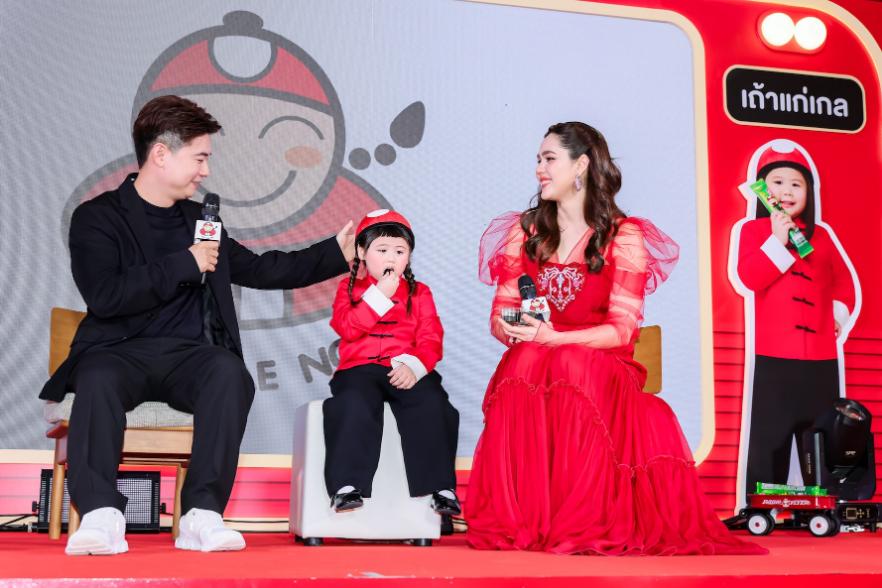 คุณอิทธิพัทธ์ พีระเดชาพันธ์ ประธานเจ้าหน้าที่บริหาร บริษัท เถ้าแก่น้อย ฟู๊ดแอนด์มาร์เก็ตติ้งจำกัด (มหาชน) กล่าวว่า “เราเลือก แม่ชมพู่ อารยา และน้องแอบิเกล มาเป็นพรีเซนเตอร์ในครั้งนี้ เพราะ