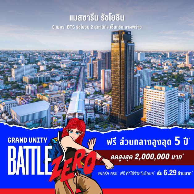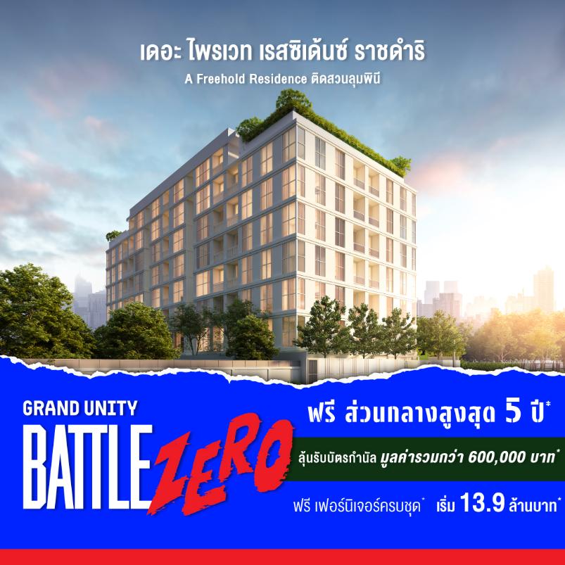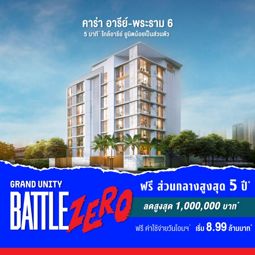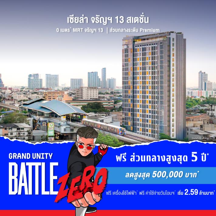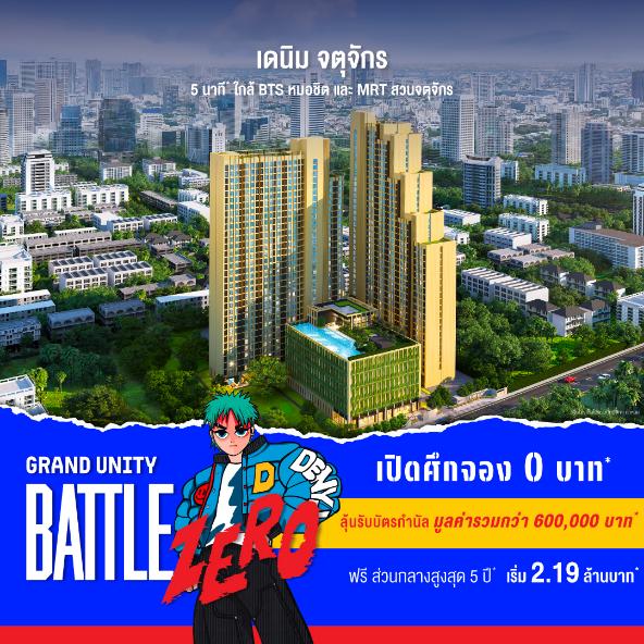 ห้ามพลาด! ข้อเสนอที่ดีที่สุดแห่งปีในงาน “GRAND UNITY BATTLE ZERO – เปิดศึกจอง 0 บาท” ระหว่างวันที่ 18 – 24 กันยายน 2568 เวลา 10.00 – 22.00 น. ณ ชั้น 1 โซน A ศูนย์การค้าเซ็นทรัล ลาดพร้าว สอบถามข้อมูลเพิ่มเติมได้ที่ www.grandunity.co.th, LINE: @GrandUnity หรือโทร. 0 2652 4000