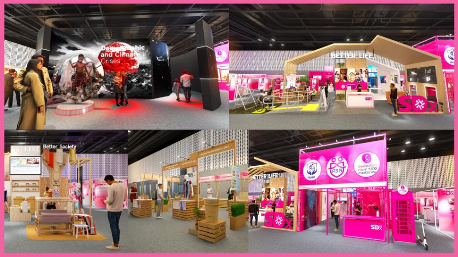 ภายในงานทั้ง 2 วันยังมีโซนนิทรรศการที่น่าสนใจ 5 โซน ได้แก่ 1) โซน SDx Pavillion:Demographic and Climate Crises นำเสนอสถานการณ์ แนวโน้ม ผลกระทบของ “วิกฤตซ้อนวิกฤต : โครงสร้างประชากรและสภาพภูมิอากาศ” ทั้งในระดับโลก ภูมิภาค และประเทศ ผ่าน จอ LED ลูกโลกขนาดใหญ่