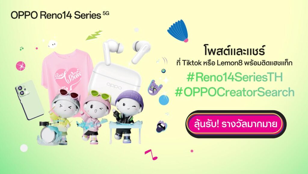ติดตามรายละเอียดผลิตภัณฑ์เพิ่มเติมได้ที่ : https://www.oppo.com/th/smartphones/series-reno/reno14/