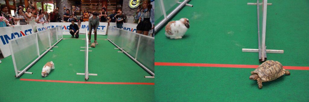 อีกหนึ่งกิจกรรมที่เรียกเสียงหัวเราะและความประทับใจจากผู้ร่วมงานคือ คู่แข่งต่างสายพันธุ์ในตำนาน “กระต่ายปะทะเต่า” ที่ถูกยกจากนิทานคลาสสิกมาโลดแล่นบนสนามจริง กระต่ายตัวจิ๋ววิ่งปรู๊ดปร๊าดสวนทางกับเต่าที่ค่อย ๆ เดินอย่างมั่นคง เสียงหัวเราะดังขึ้นทุกครั้งที่เห็นภาพความต่างสุดขั้วที่ลงตัวอย่างน่าเอ็นดู ที่สำคัญคือผลการแข่งขันไม่ได้มีใครแพ้ใครชนะขาด เพราะแต่ละรอบต่างผลัดกันคว้าชัย สร้างสีสันแบบ ไม่มีใครน้อยหน้าใคร กลายเป็นเวทีแห่งความสุขที่ทุกคนปรบมือให้ทั้งกระต่ายและเต่าอย่างเท่าเทียม ความสนุกยังต่อเนื่องกับการประกวดสุดครีเอตทั้ง หมาเลียไวได้ใจโอปป้า และ แมวเลียแดนกิมจิ ที่เหล่าเพื่อนรักสี่ขาต่างแต่งตัวจัดเต็มในสไตล์เกาหลี พร้อมโชว์ความน่ารักและแข่งขันกินขนมกันอย่างสนุกสนาน จนผู้ชมอดยิ้มตามไม่ได้ งานนี้บอกได้คำเดียวว่า สนุกจนลืมเวลา!