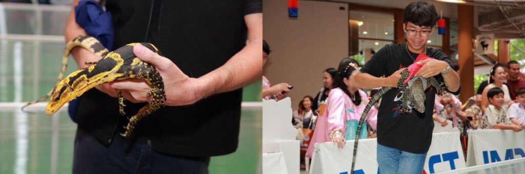 ภายในงานยังอบอวลไปด้วยความน่ารักของเหล่าสัตว์เลี้ยงหลากหลายสายพันธุ์ที่พากันมาร่วมสร้างสีสัน ไม่ว่าจะเป็นงู กระต่าย มอนิเตอร์ลิซาร์ด นกแก้วมาคอว์ น้องหมา น้องแมว เต่า และอีกมากมาย ทุกตัวต่างควงคู่มากับคุณพ่อคุณแม่ผู้เลี้ยง เพื่อใช้เวลาวันหยุดสุดสัปดาห์ร่วมกันอย่างอบอุ่นและสนุกสนาน