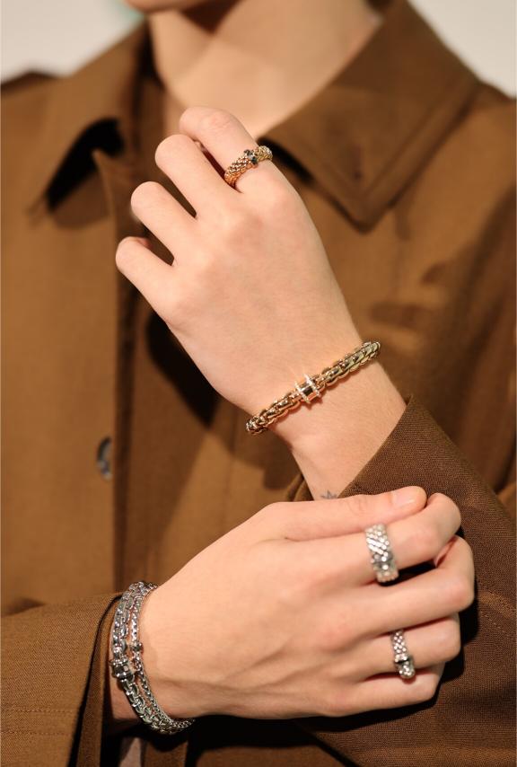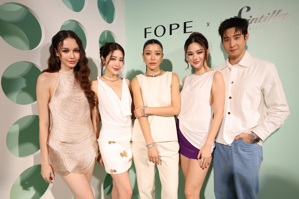 ในงานเปิดตัวครั้งนี้ FOPE นำเสนอ 4 คอลเลกชันล่าสุดที่ผสานความหรูหราเข้ากับนวัตกรรมการสวมใส่ที่เป็นเอกลักษณ์ผ่านทอง 18k ทั้ง White Gold, Yellow Gold และRose Gold พร้อมเอกลักษณ์ของนวัตกรรม Flex’it และงานถักทองสุดประณีต Love Nest นำเสนอสไตล์คลาสสิกที่ถูกตีความใหม่ ด้วยสายสร้อย Novecento อันเป็นซิกเนเจอร์จากยุค 80s สะกดทุกสายตา Eka โดดเด่นด้วยเทคโนโลยี Flex’it ทำให้สร้อยและกำไลสามารถยืดหยุ่นได้โดยไม่ต้องมีตัวล็อก ดีไซน์เม็ดทองเรียงร้อยราวกับ ‘โอบกอด’ กัน พร้อมให้เลือกหลายรูปแบบ และไลน์ High-End อย่าง Eka Ice ประดับเพชรขนาดใหญ่ ที่หรูและร่วมสมัย Aria สร้อยคอสไตล์ Lariat และ Y-shape บางเบาราวสายลม พร้อมตัวล็อกปรับระดับได้ ปิดท้ายด้วย Panorama กำไลและแหวนที่สะกดทุกสายตาเปลี่ยนทุกวันธรรมดาให้กลายเป็นวันพิเศษ