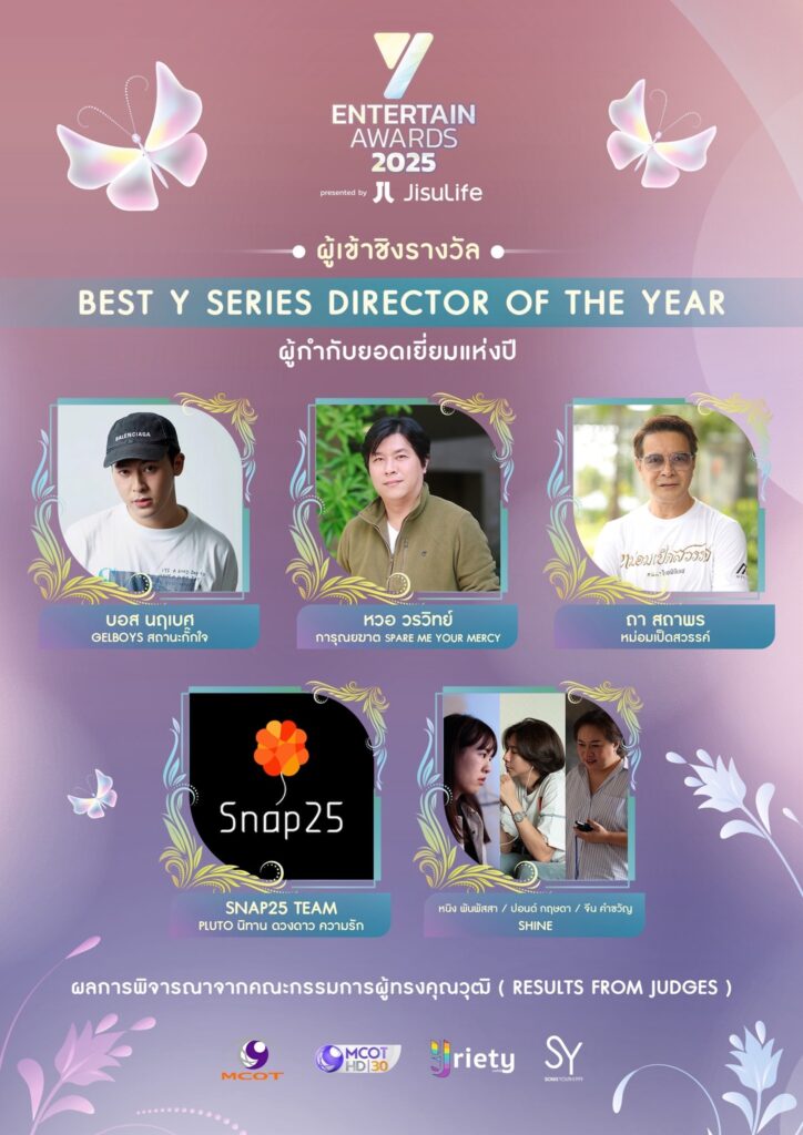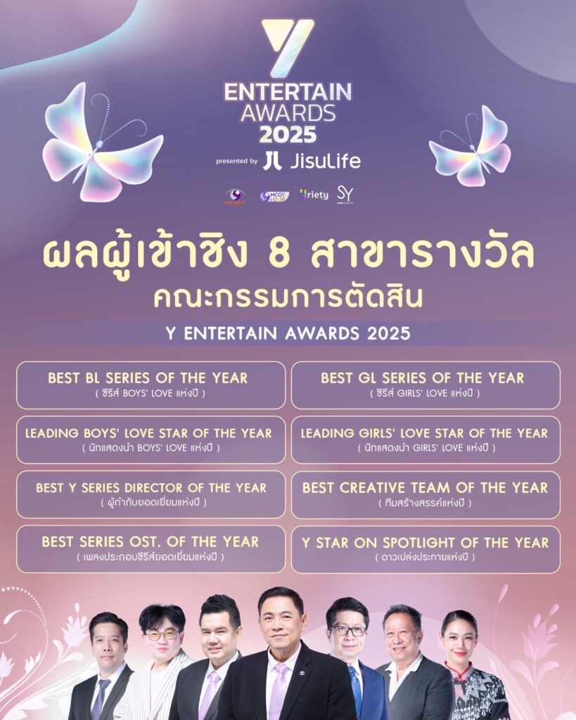 บริษัท อสมท จำกัด (มหาชน) ร่วมกับ บริษัท โซนิกซ์ ยูธ จำกัด โดย ก้อง-ปิยะ เศวตพิกุล จัดงานประกาศรางวัล “Y Entertain Awards 2025 presented by JisuLife” พร้อมผลักดันบันเทิง Y สู่ระดับสากล พร้อมเปิดรายชื่อผู้เข้าชิง 8 สาขารางวัล จากการตัดสินของคณะกรรมการผู้ทรงคุณวุฒิ นำโดย ผาติยุทธ ใจสว่าง, วศิน บุณยาคม, รศ.ดร.ปรีดา อัครจันทโชติ, ปิยะ เศวตพิกุล, ยุทธนา ลอพันธุ์ไพบูลย์, ศิรพันธ์ วัฒนจินดา และ วีรยุทธ แก้วจินดา โดยเตรียมลุ้นผลพร้อมกันได้ในงานประกาศรางวัล “Y Entertain Awards 2025 presented by JisuLife” วันอังคารที่ 23 ก.ย. นี้ ณ True ICON Hall ICONSIAM และสามารถติดตามชมการถ่ายทอดภาพความประทับใจได้ทางช่อง 9 กด 30 เวลา 22.00 น. พร้อมชมเบื้องหลังและเบื้องหน้าอัพเดทตลอดทั้งวันได้ทาง https://www.facebook.com/Yriety
