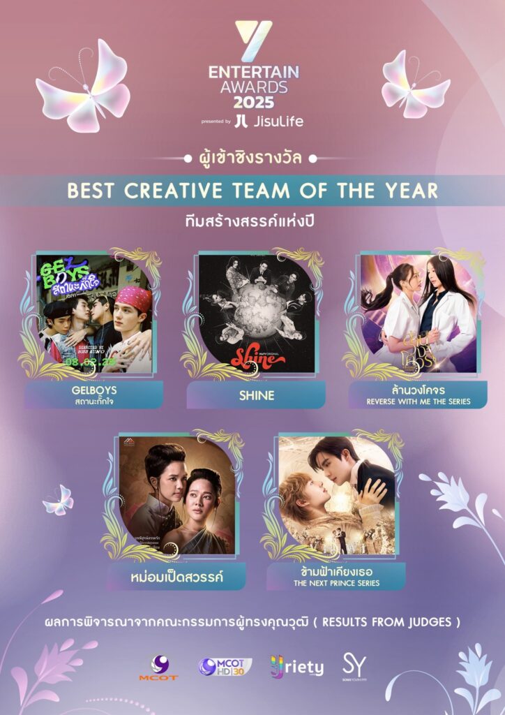 Best Creative Team of the Year (ทีมสร้างสรรค์แห่งปี) GELBOYS สถานะกั๊กใจ, Shine, ล้านวงโคจร Reverse with Me The Series, หม่อมเป็ดสวรรค์, ข้ามฟ้าเคียงเธอ The Next Prince Series