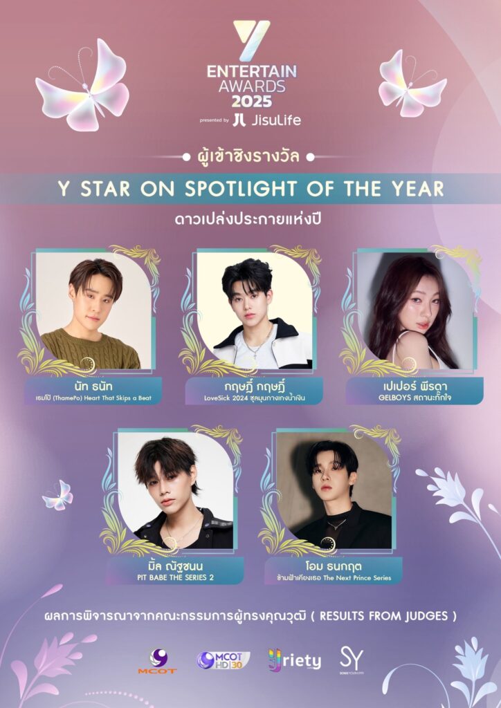 Y Star on Spotlight of the Year (ดาวเปล่งประกายแห่งปี) นัท ธนัท ด่านเจษฎา (เธมโป้ (ThamePo) Heart That Skips a Beat), กฤษฎิ์ กฤษฎิ์ งามธนกิจจา (LoveSick 2024 ชุลมุนกางเกงน้ำเงิน), เปเปอร์ พีรดา นามวงค์ (GELBOYS สถานะกั๊กใจ), มิ้ล ณัฐชนน ศุภวรวงศ์ (PIT BABE THE SERIES 2), โอม ธนกฤต เจียมจรรยา (ข้ามฟ้าเคียงเธอ The Next Prince Series)