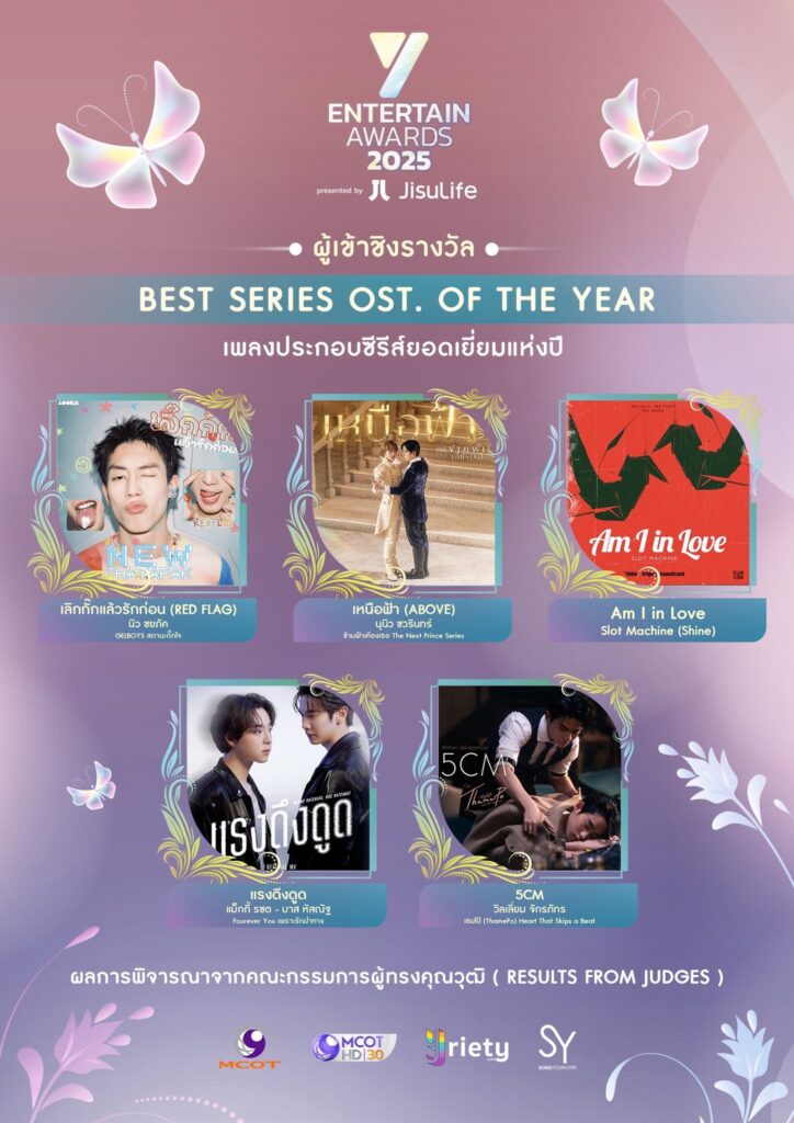 Best Series OST. of the Year (เพลงประกอบซีรีส์ยอดเยี่ยมแห่งปี) เลิกกั๊กแล้วรักก่อน (RED FLAG) – นิว ชยภัค ตันประยูร (GELBOYS สถานะกั๊กใจ), เหนือฟ้า (ABOVE) นุนิว ชวรินทร์ เพริศพิริยะวงศ์ (ข้ามฟ้าเคียงเธอ The Next Prince Series), Am I in Love / Slot Machine (Shine), แรงดึงดูด แม็กกี้ รชต พิเชฐโชติ – บาส หัสณัฐ พินิวัตร์ (Fourever You เพราะรักนำทาง), 5CM วิลเลี่ยม จักรภัทร แก้วพันธุ์พงษ์ (เธมโป้ (ThamePo) Heart That Skips a Beat)