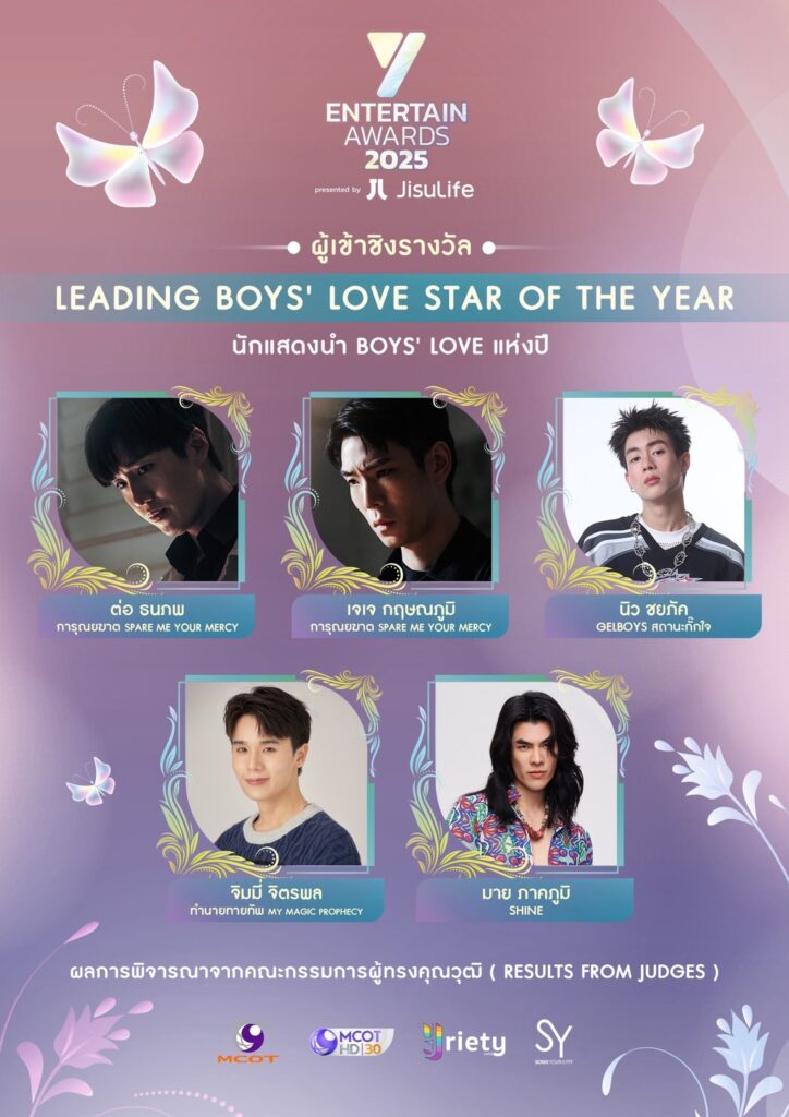 Leading Boys’ Love Star of the Year (นักแสดงนำ Boys’ Love แห่งปี) ต่อ ธนภพ ลีรัตนขจร (การุณยฆาต SPARE ME YOUR MERCY), เจเจ กฤษณภูมิ พิบูลสงคราม (การุณยฆาต SPARE ME YOUR MERCY), นิว ชยภัค ตันประยูร (GELBOYS สถานะกั๊กใจ), จิมมี่ จิตรพล โพธิวิหค (ทำนายทายทัพ My Magic Prophecy), มาย ภาคภูมิ ร่มไทรทอง (Shine)
