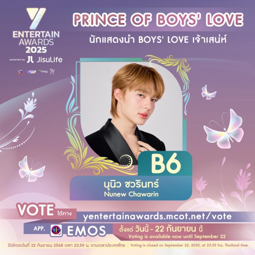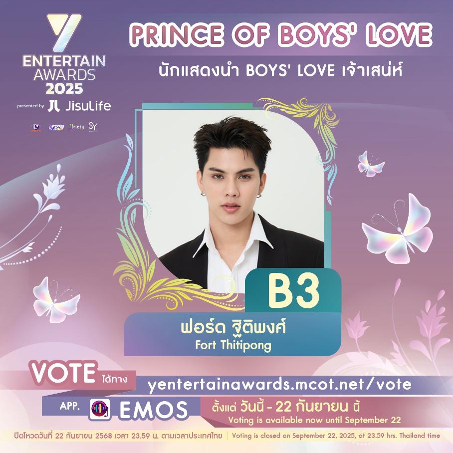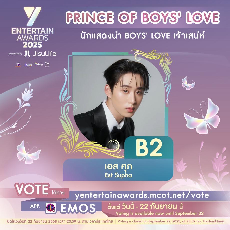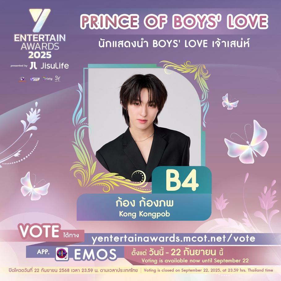 บริษัท อสมท จำกัด (มหาชน) ร่วมกับ บริษัท โซนิกซ์ ยูธ จำกัด โดย ก้อง-ปิยะ เศวตพิกุล จัดงานประกาศรางวัล “Y Entertain Awards 2025 presented by JisuLife” พร้อมเปิดโผ เปิดโหวตผู้เข้ารอบ เข้าชิงสาขารางวัล Prince of Boys’ Love (นักแสดงนำ Boys’ Love เจ้าเสน่ห์)