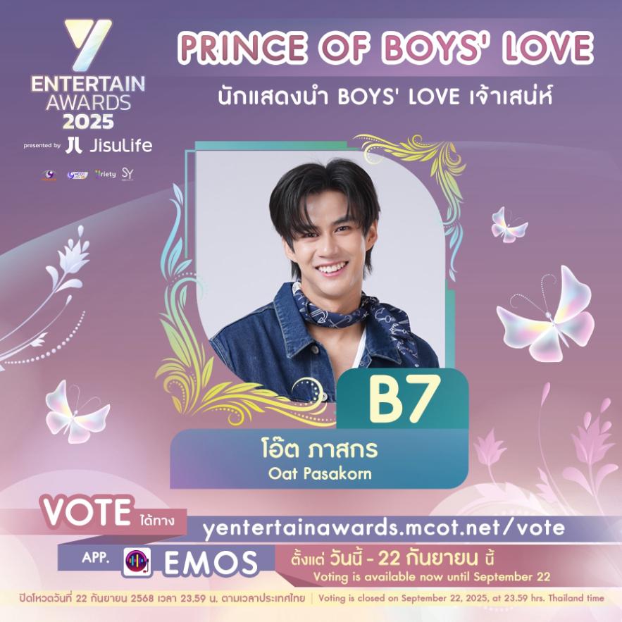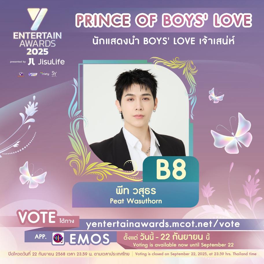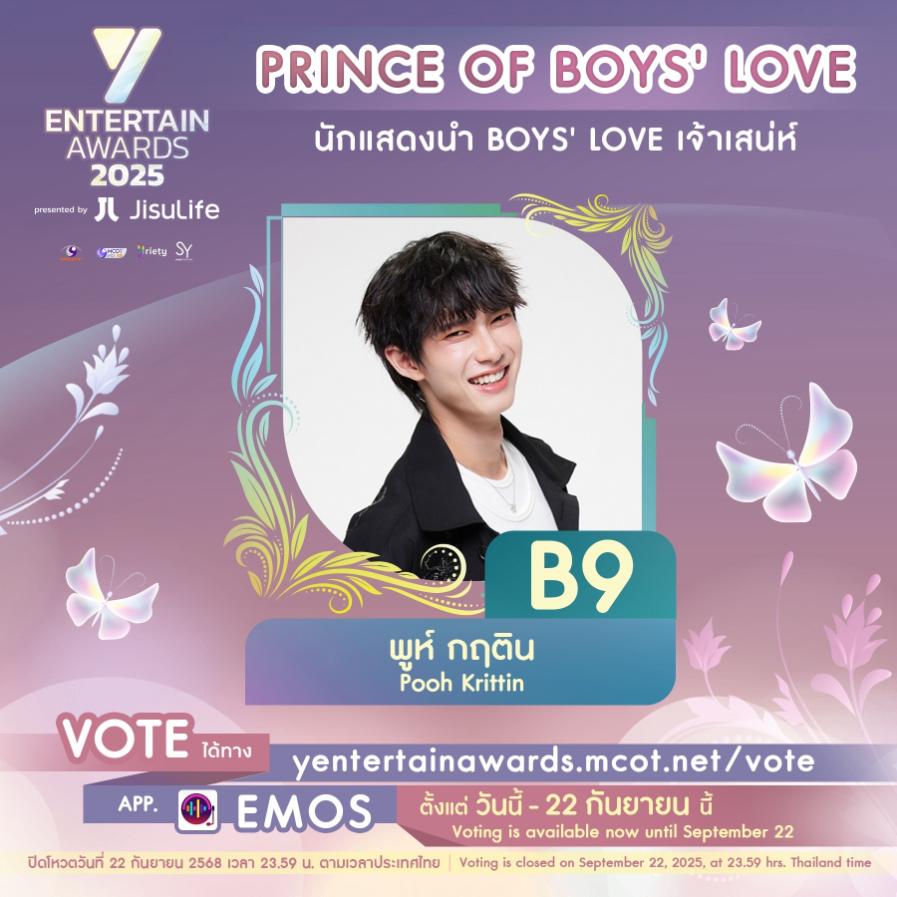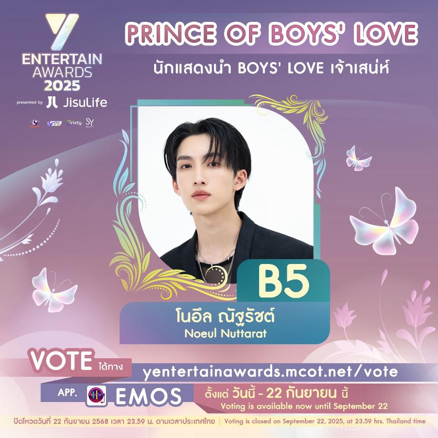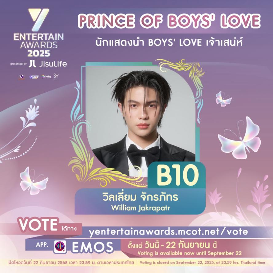 บริษัท อสมท จำกัด (มหาชน) ร่วมกับ บริษัท โซนิกซ์ ยูธ จำกัด โดย ก้อง-ปิยะ เศวตพิกุล จัดงานประกาศรางวัล “Y Entertain Awards 2025 presented by JisuLife” พร้อมเปิดโผ เปิดโหวตผู้เข้ารอบ เข้าชิงสาขารางวัล Prince of Boys’ Love (นักแสดงนำ Boys’ Love เจ้าเสน่ห์)