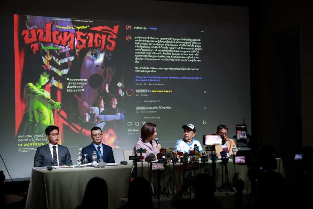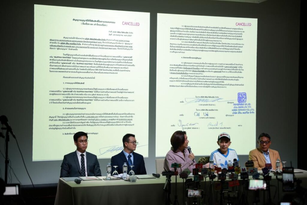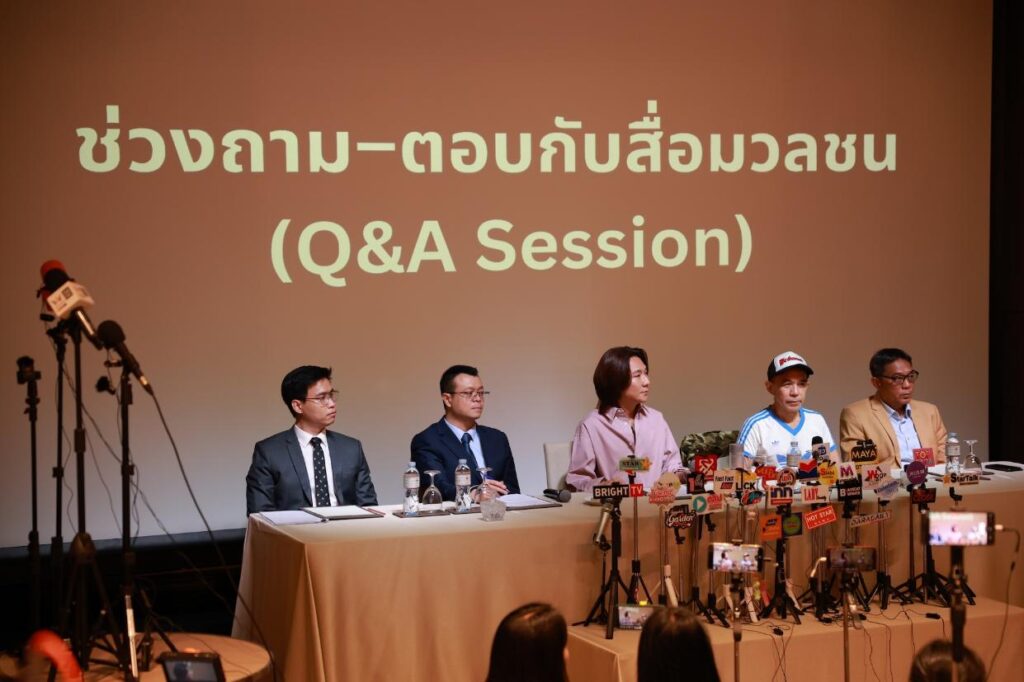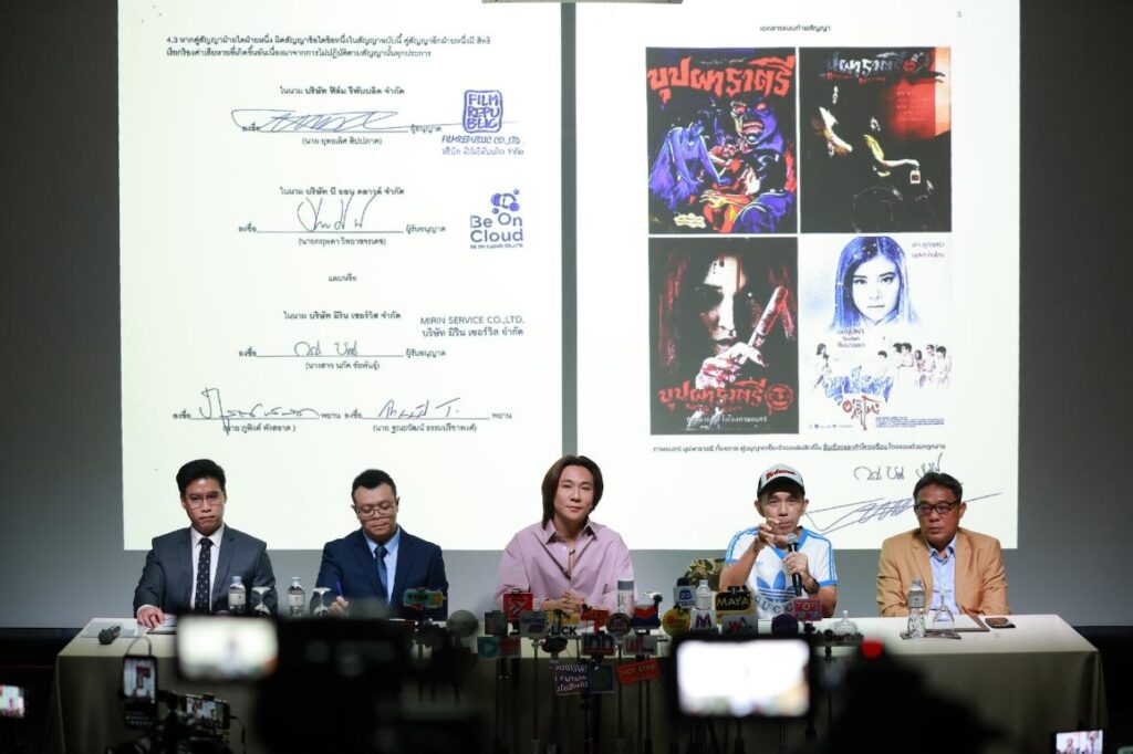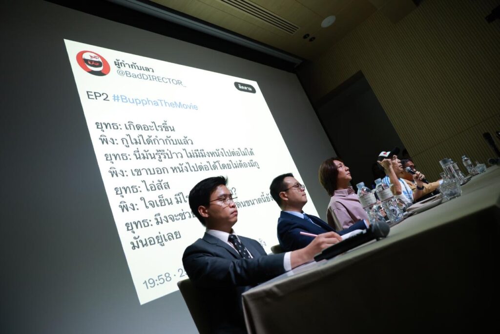 โดยในงานนี้ได้มีคุณปอนด์ กฤษดา ประธานเจ้าหน้าที่บริหารบริษัท บี ออน คลาวด์ จำกัด และยังเป็นผู้อำนวยการสร้างพร้อมหนึ่งในทีมเขียนบทและผู้กำกับภาพยนตร์เรื่องนี้ร่วมกับคุณพิง ลำพระเพลิง และทีมทนายความร่วมชี้แจงต่อหน้าสื่อมวลชนที่ให้ความสนใจเข้าร่วมกันอย่างล้นหลาม ซึ่งได้มีการไล่ไทม์ไลน์ของที่มาหลากหลายประเด็น